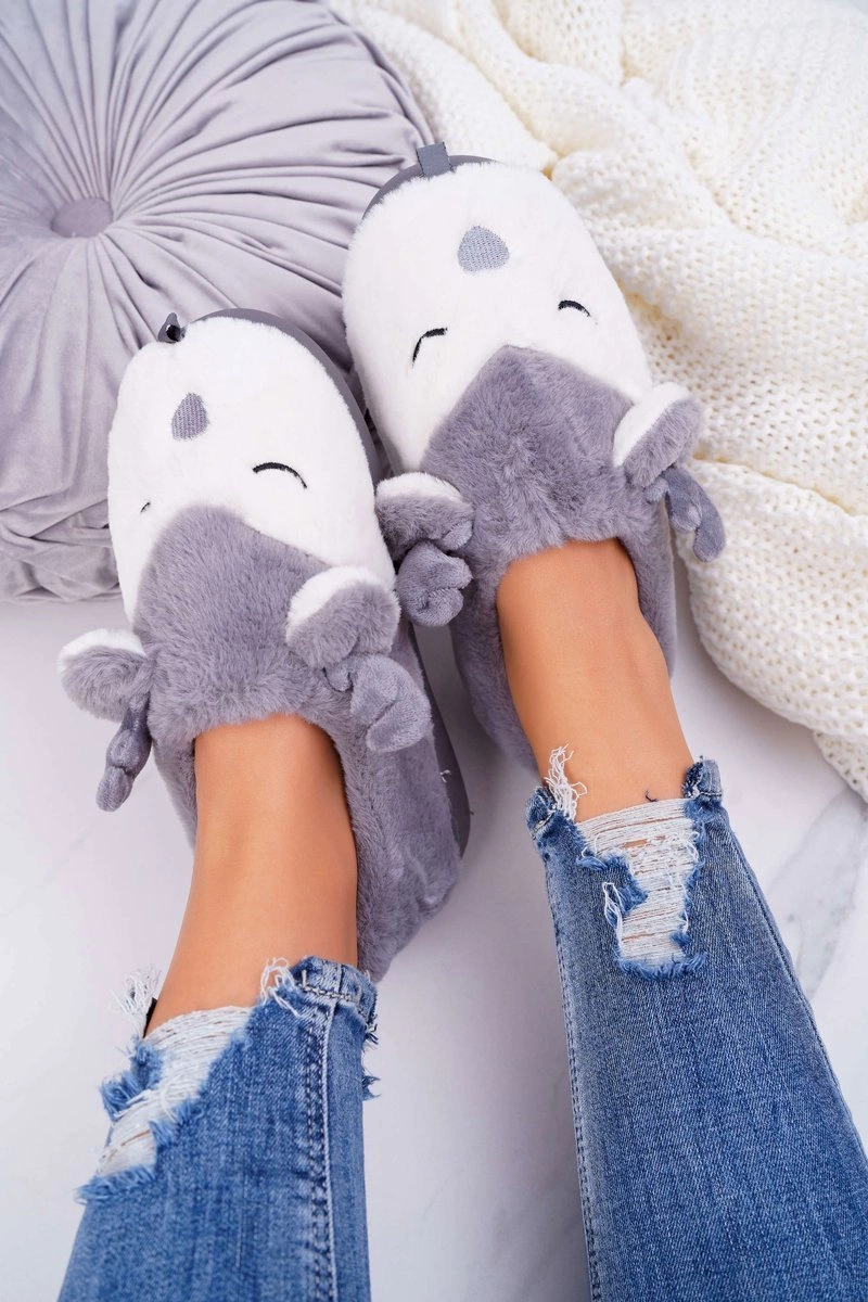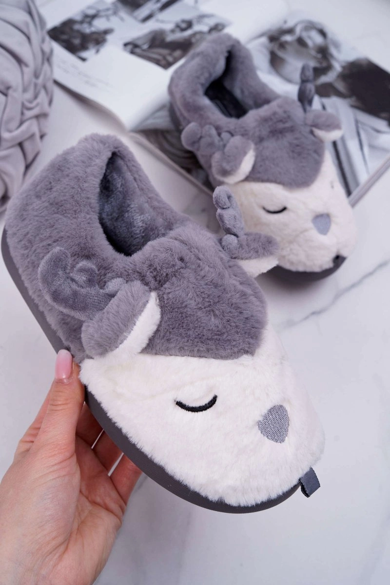 Papcie Damskie Z Futerkiem Renifery Szare Reindeer