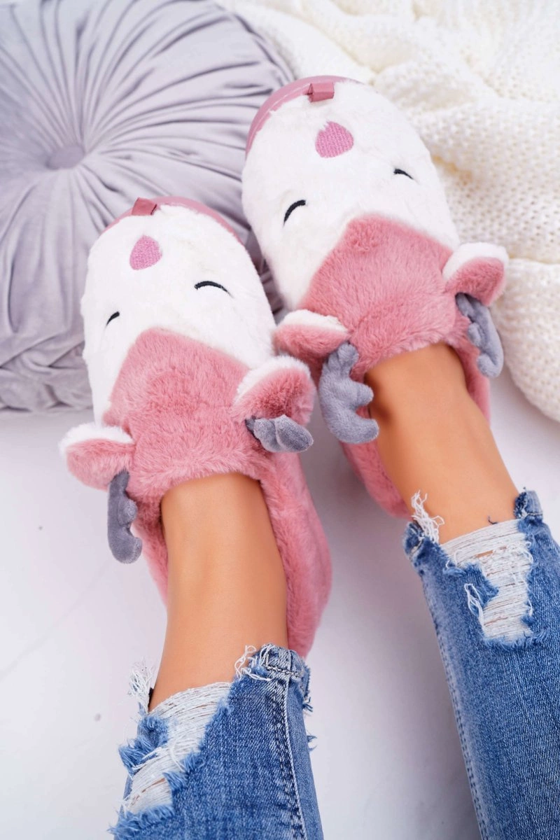 Papcie Damskie Z Futerkiem Renifery Ciemny Róż Reindeer