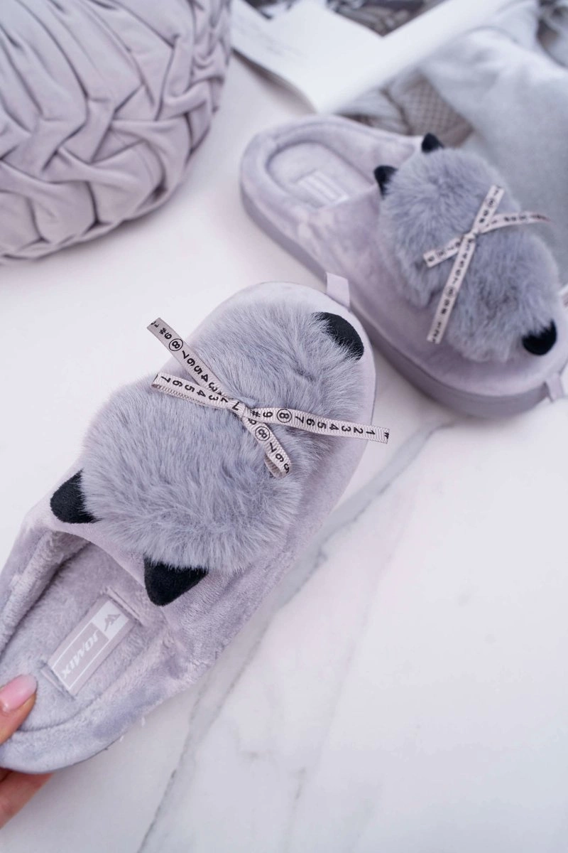 Papcie Damskie Z Futerkiem Kotek Szare Kitty