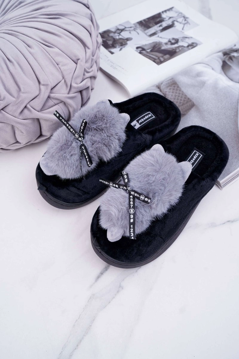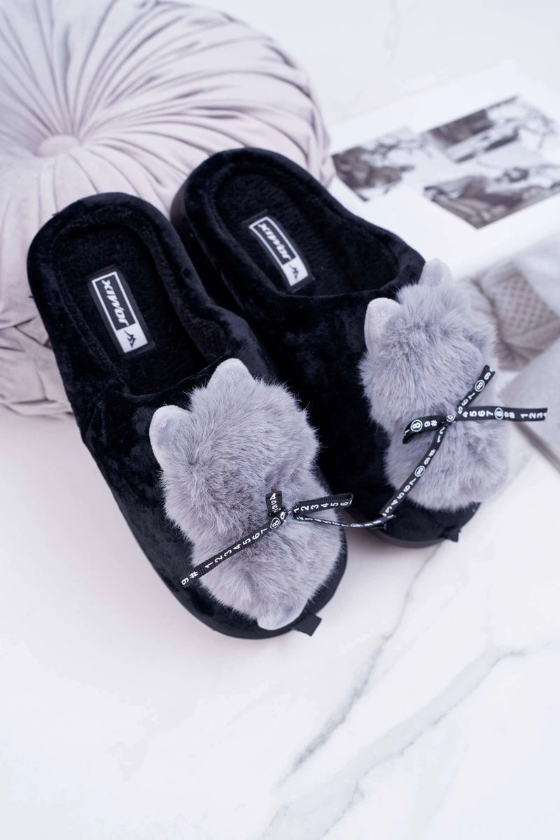 Papcie Damskie Z Futerkiem Kotek Czarne Kitty