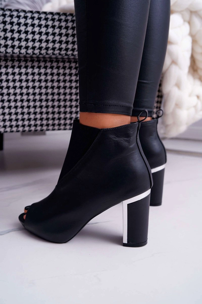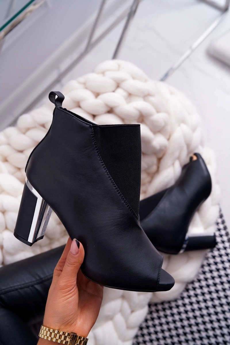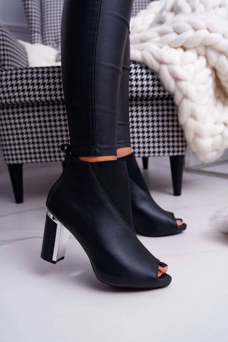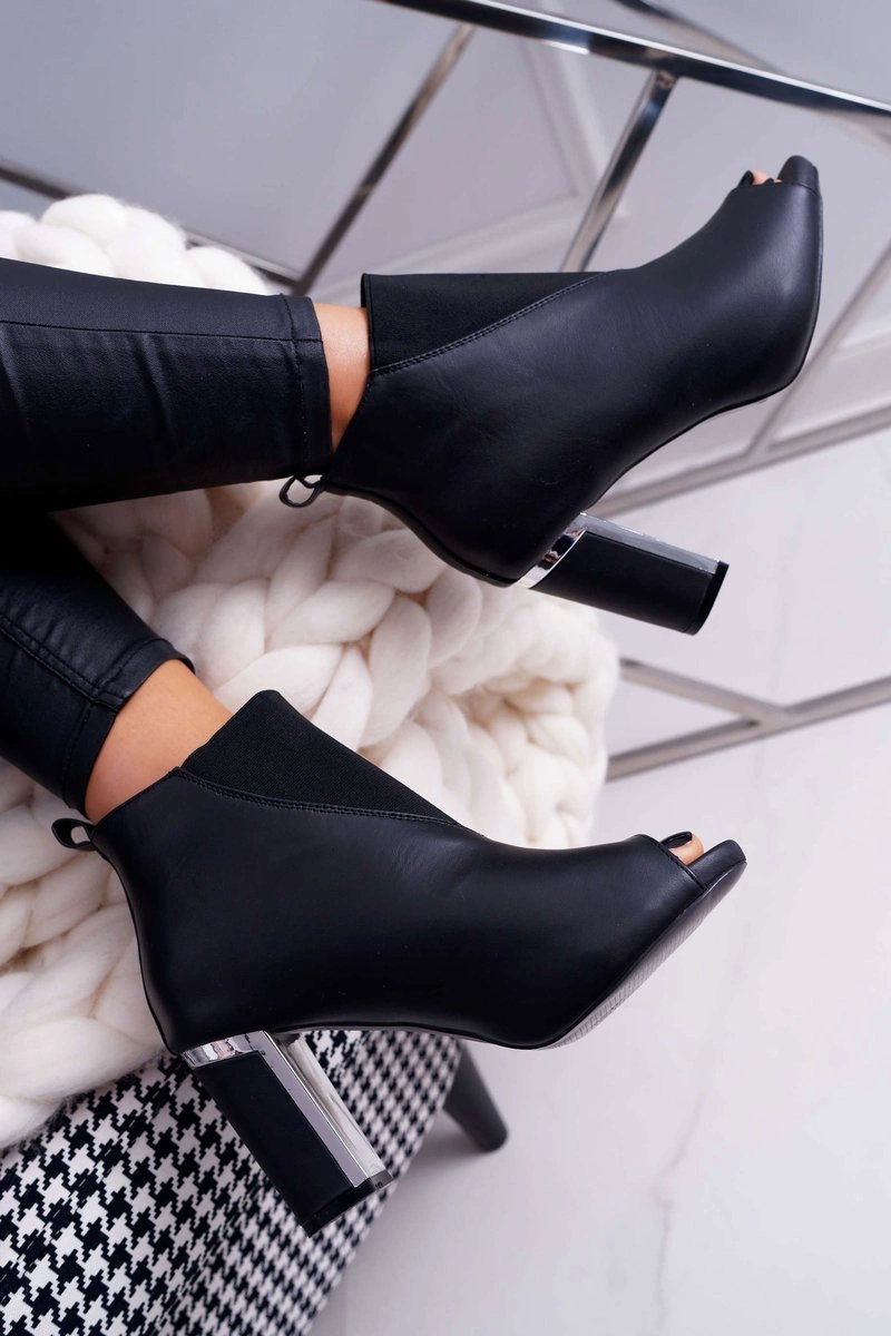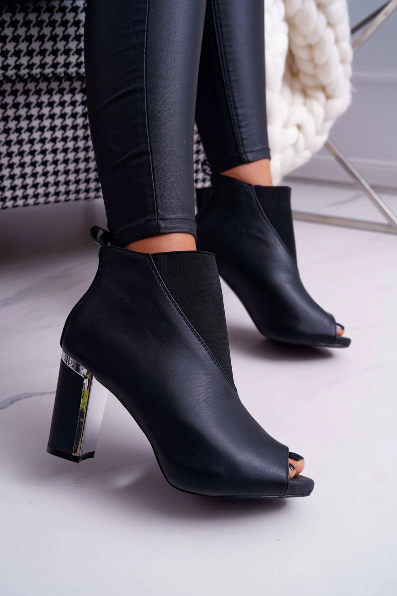 Botki Damskie na Słupku Odkryte Palce Wsuwane Czarne Germen