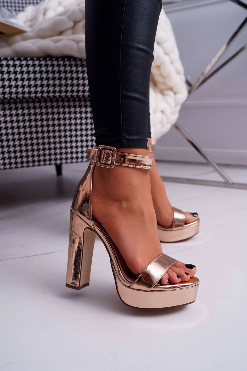 Sandały Damskie Na Słupku Platforma Różowe Złoto Huran