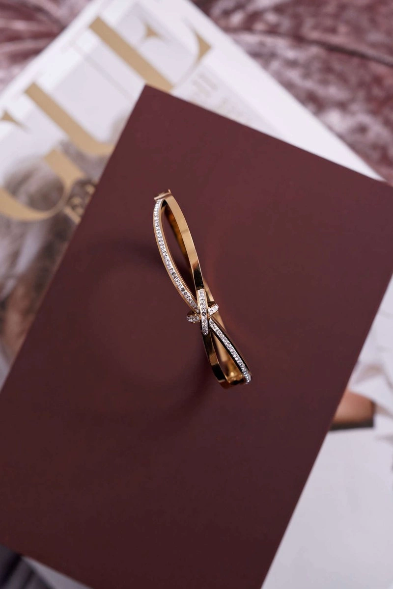 Damska Bransoleta Stalowa Z Cyrkoniami Złota Fergu