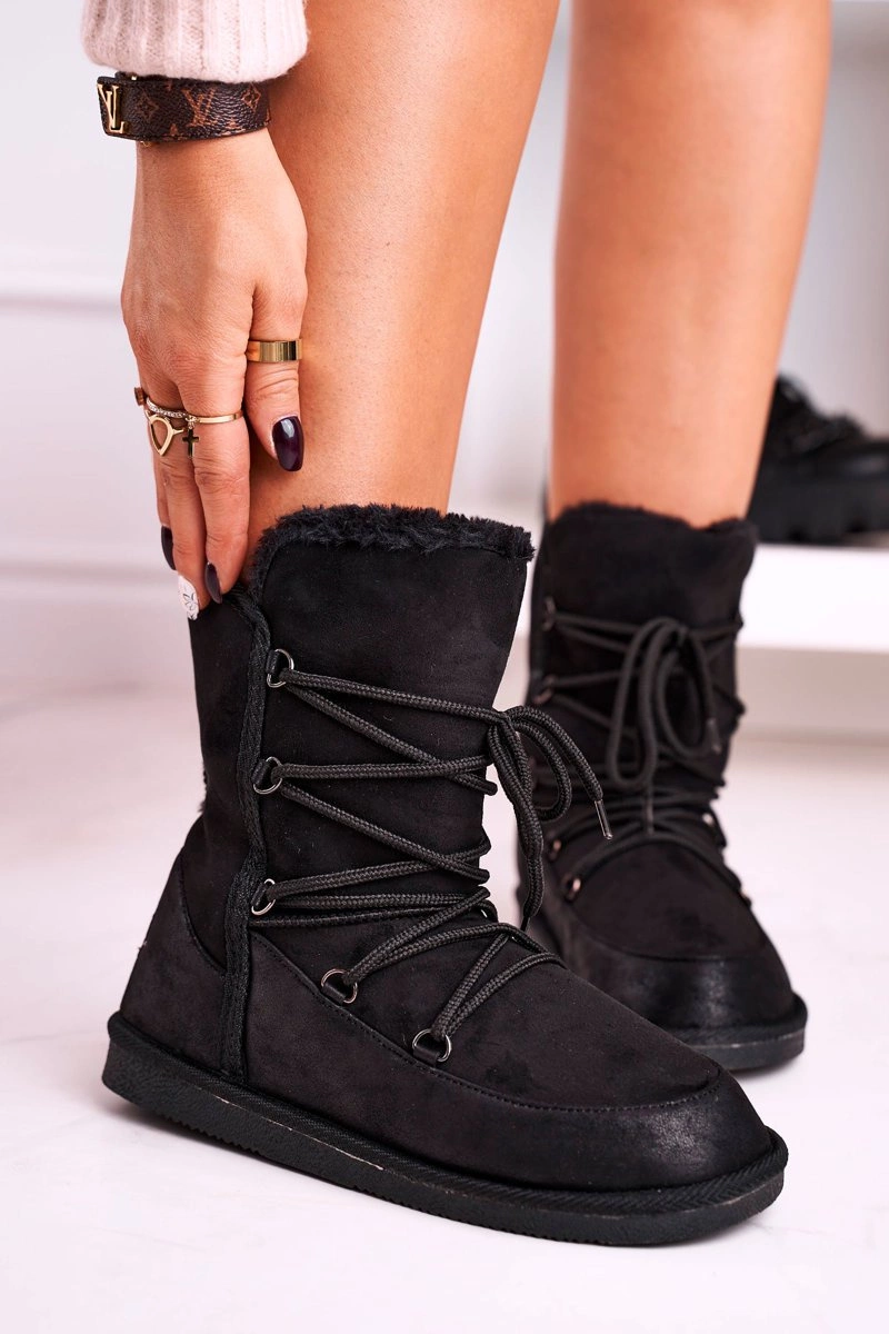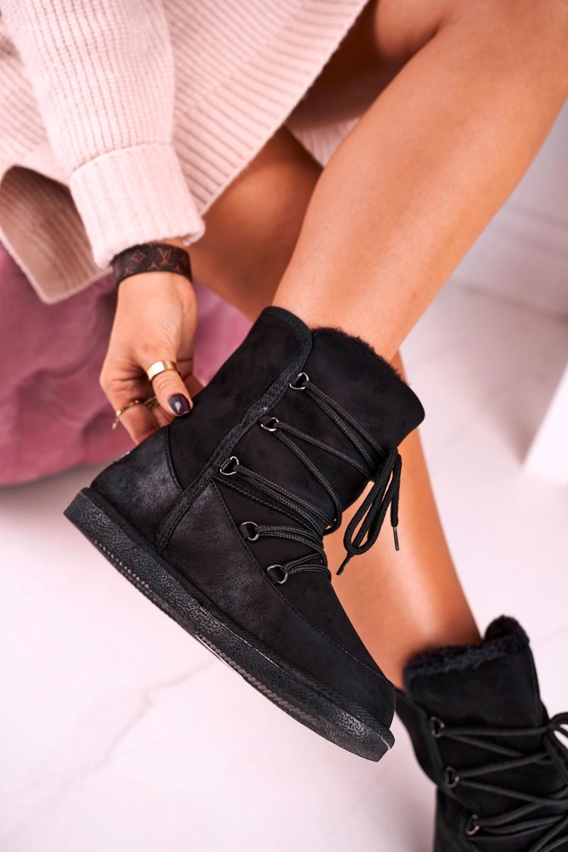 Damskie Botki Śniegowce Ocieplane Futerkiem Czarne Ilana