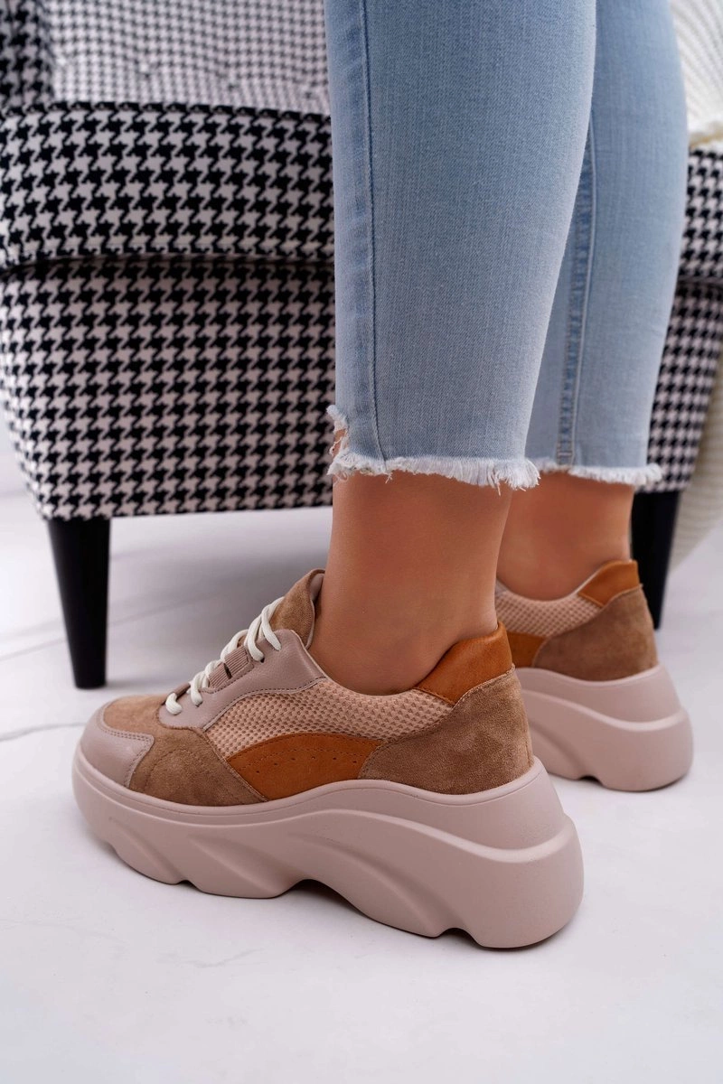 Sportowe Damskie Buty Gruba Podeszwa Camel Cardamon