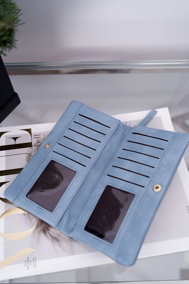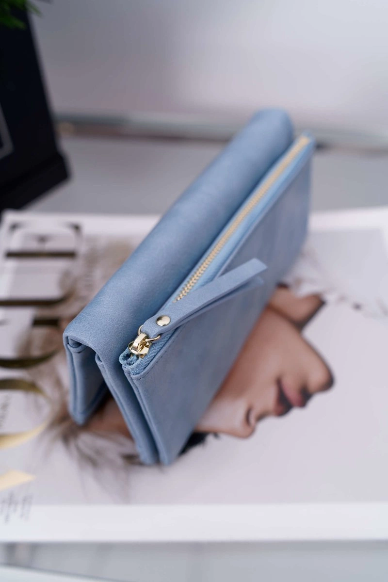 Przedstawiamy piękne portfele dla eleganckich Pań, dostępne w kilku cudownych kolorach. Produkty te charakteryzuje wyjątkowa prostota i elegancją. Wykonywane są przy użyciu najwyższej klasy materiałów. Staranne i piękne wykończenie każdego portfela oddaje niesamowitą dbałość o detale oraz modowy gust. Portfel posiada zapinanie na zatrzask. Wewnątrz znajdują się dwie komory oraz dużo kieszonek na karty. Na zewnętrznych stronach dwie dodatkowe kieszonki zamykane na zamek.