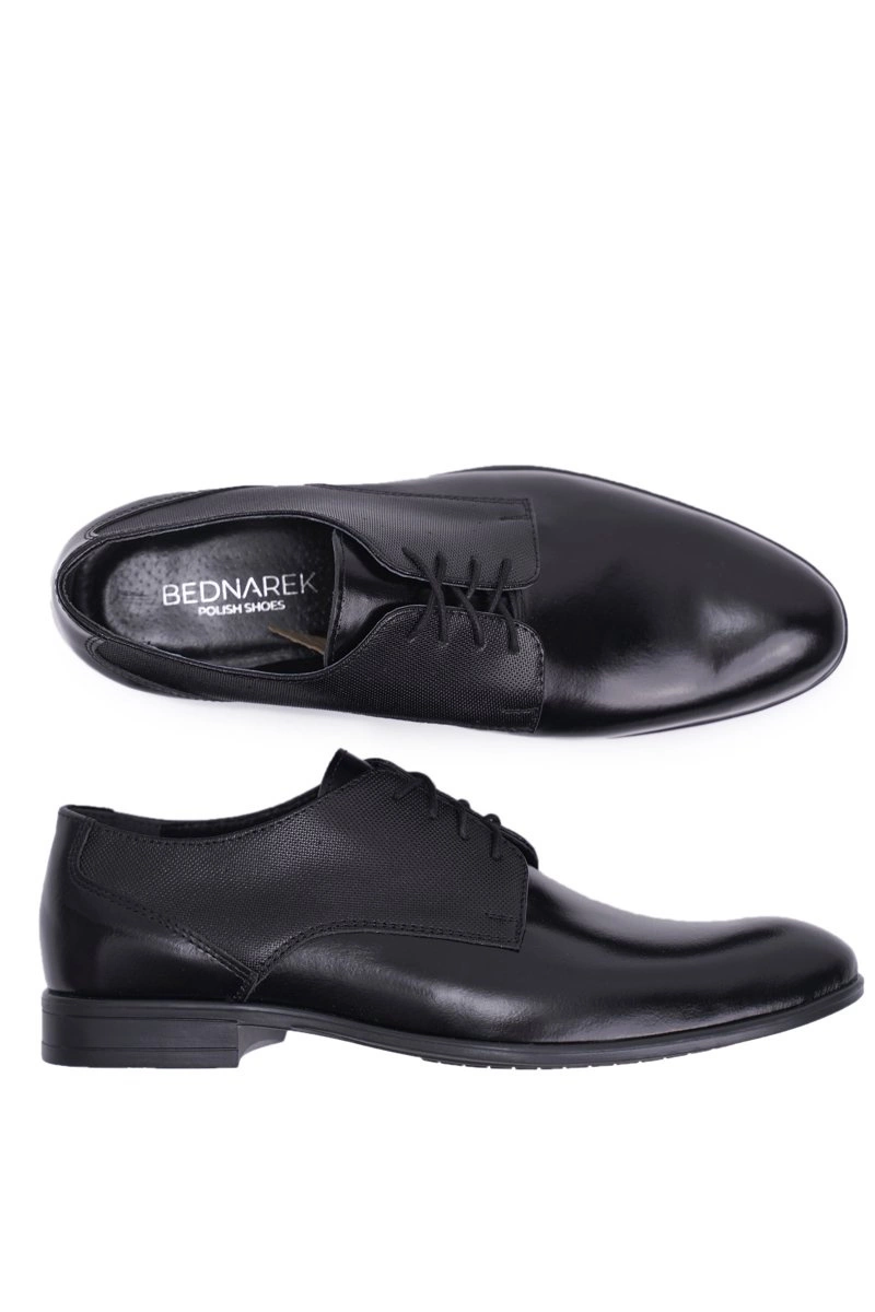 Półbuty Męskie Eleganckie Bednarek Skórzane Czarne Jantar