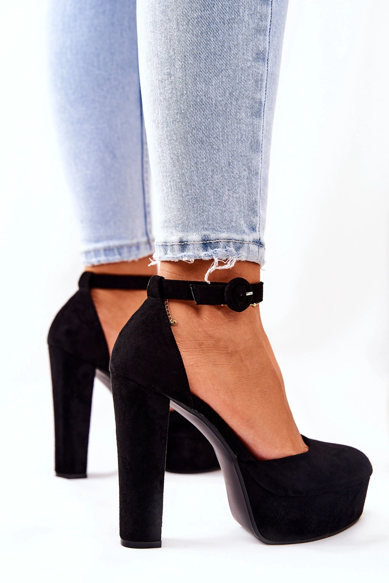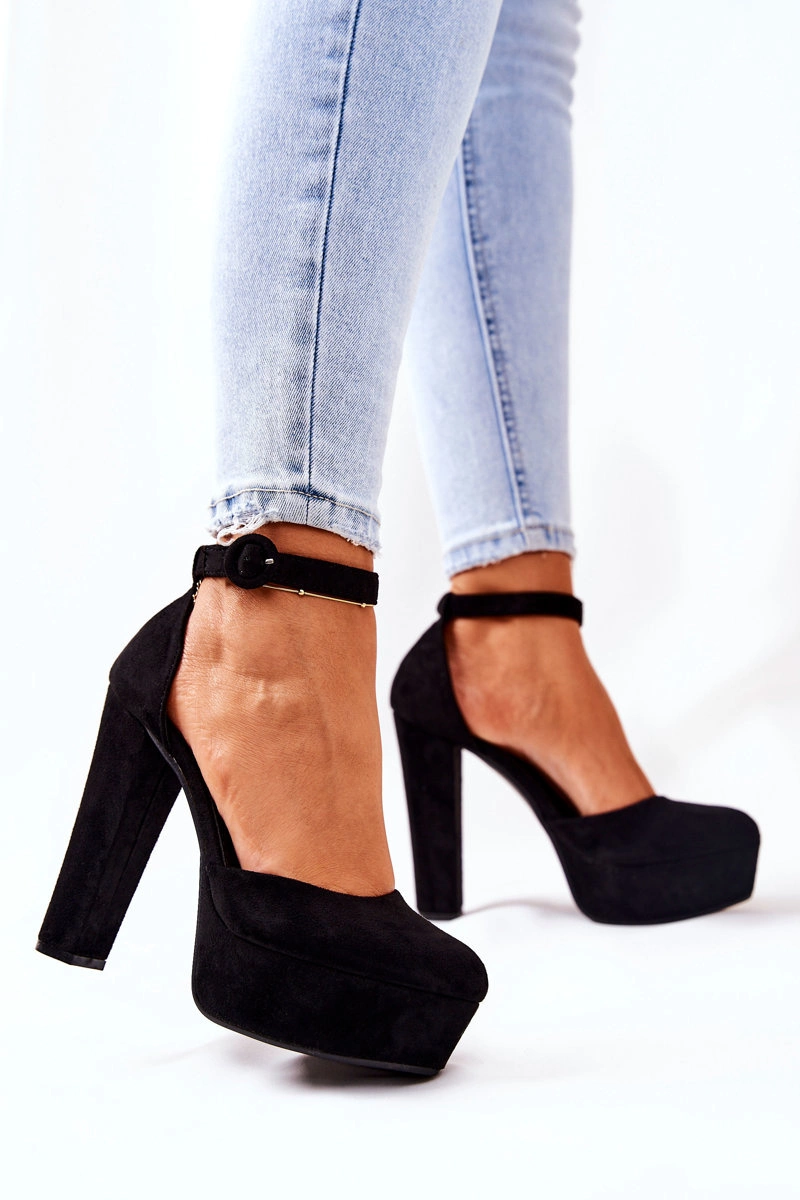 Czółenka zostały wykonane z eko skóry zamszowej. Wysoki obcas oraz platforma uniesie delikatnie sylwetkę. Miękka wkładka wykonana z eko skóry zapewnia komfort i wygodę podczas użytkowania. Czółenka zapinane na sprzączkę z regulowanym paskiem. Koniecznie sprawdź także pozostałe nasze czółenka! Przy wyborze rozmiaru prosimy kierować się tabelą rozmiarów