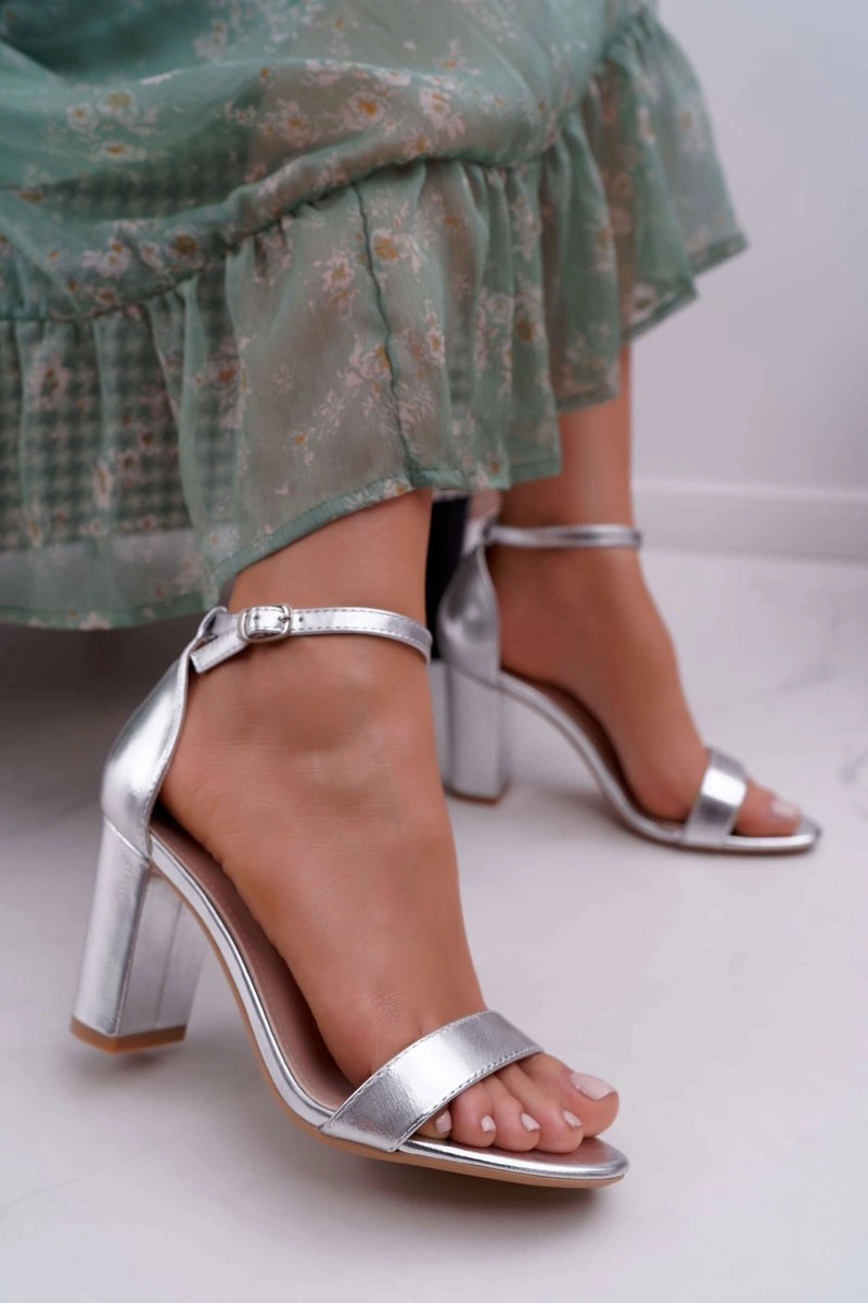 Sandały Damskie Na Słupku Klasyczne Srebrne Fiji