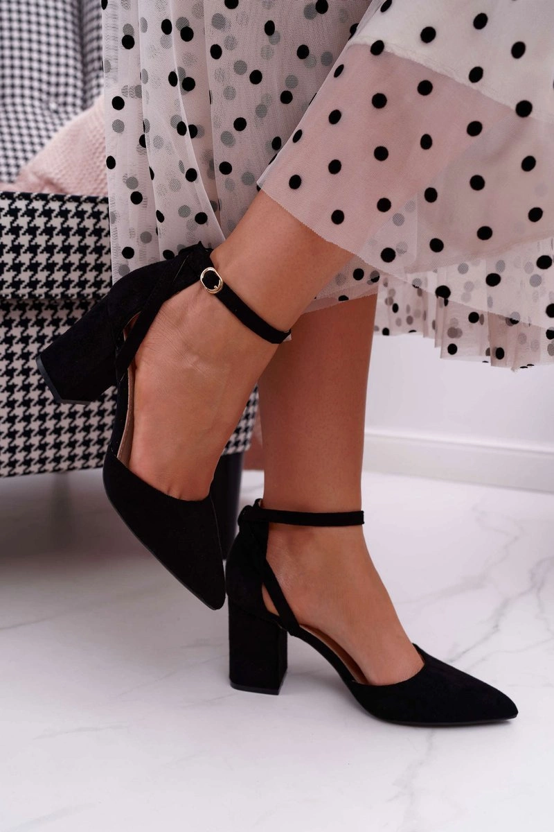 Czółenka Damskie Na Słupku W Szpic Czarne Samantha