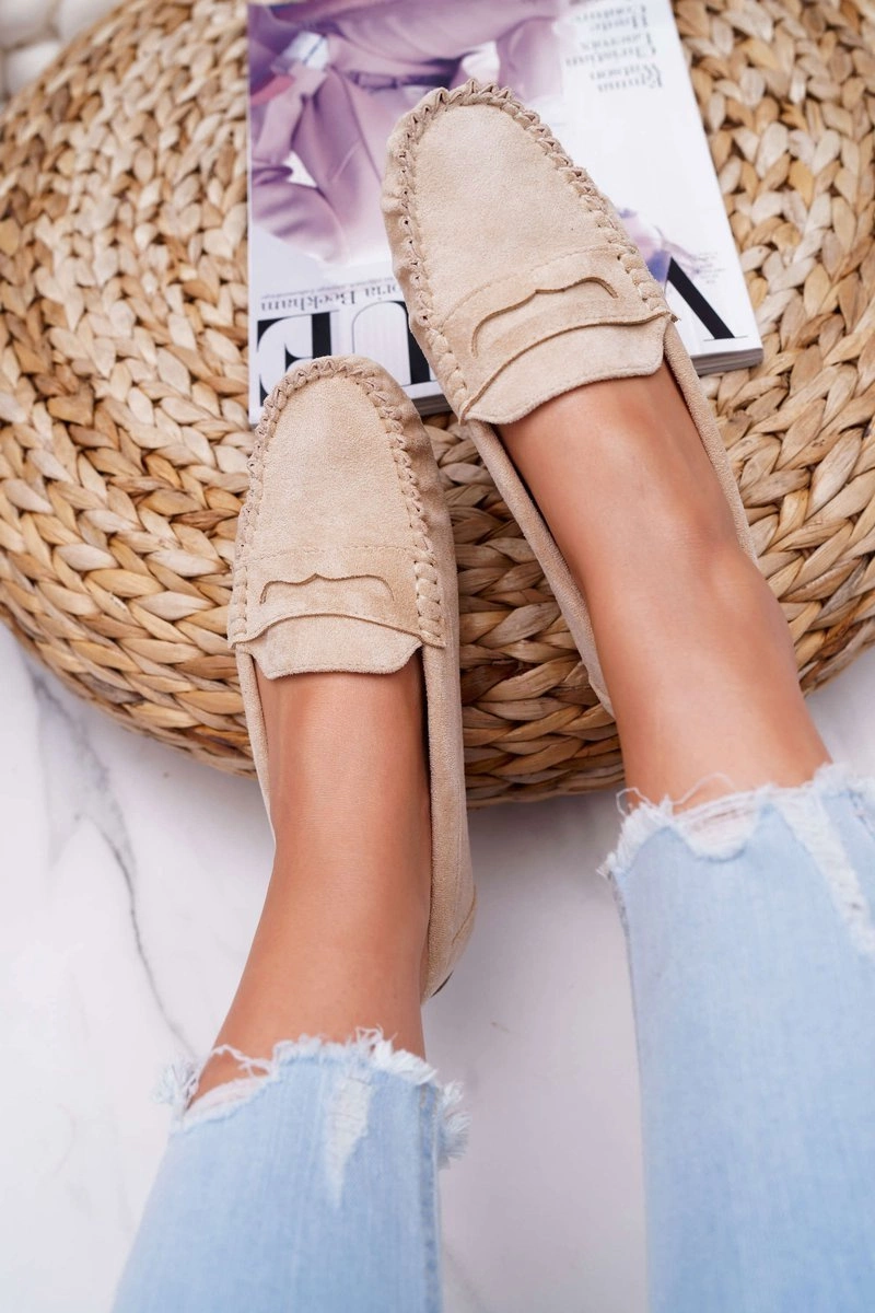 Mokasyny Damskie Beżowe Zamszowe Bolero