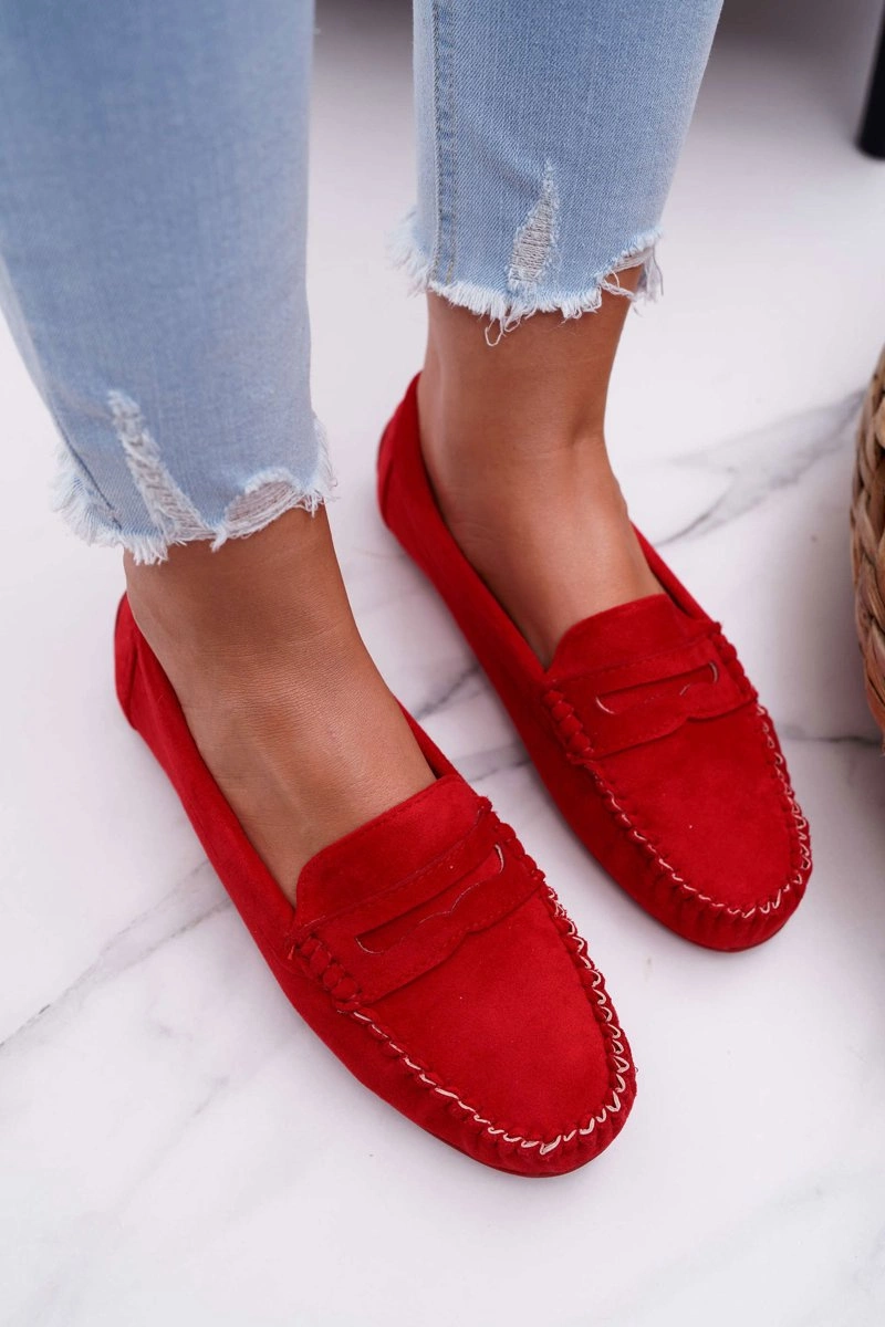 Mokasyny Damskie Czerwone Zamszowe Bolero