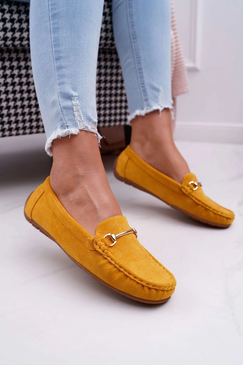 Mokasyny Damskie Żółte Zamszowe Sonnero