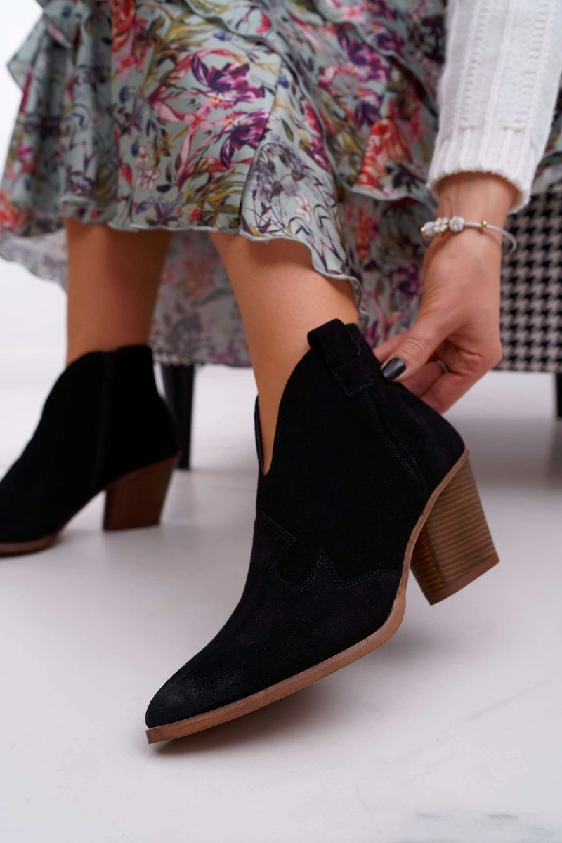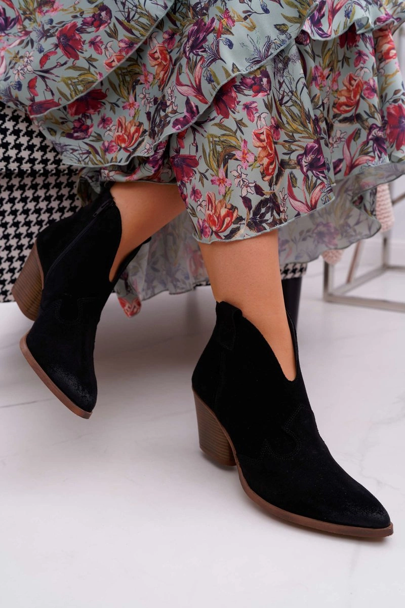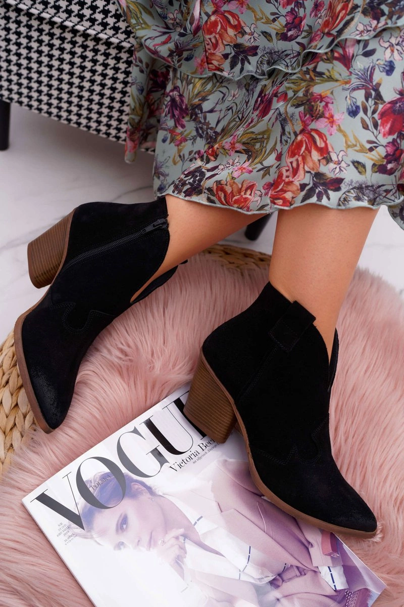 Botki to nie tylko buty na chłodne dni. Świetnie sprawdzą się również podczas tworzenia wiosennych stylizacjach. Botki posiadają zamek z boku cholewki ułatwiający zakładanie.. W całości wykonane ze skóry zamszowej. Produkt Polski, co gwarantuje nam komfort oraz wysoką jakość wykonania. Idealne do zwiewnych sukienek oraz jeansowych spodni. Przy wyborze rozmiaru prosimy sugerować się tabelą rozmiarów.