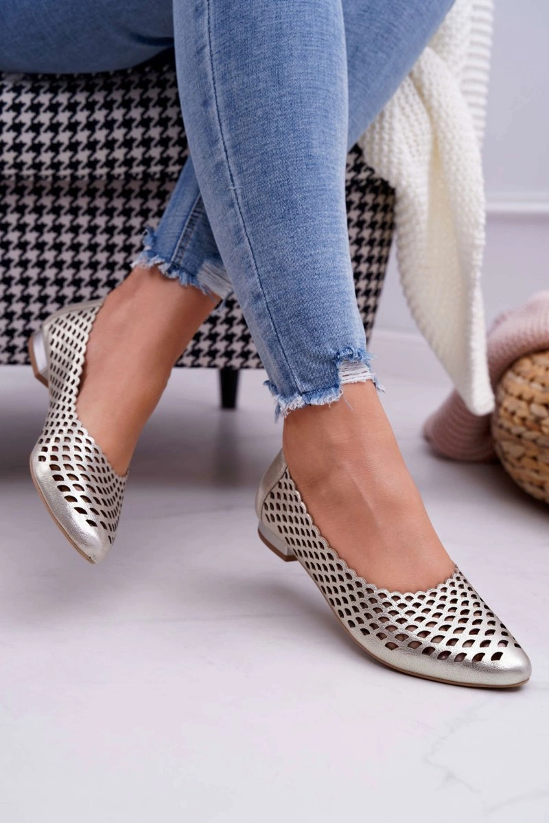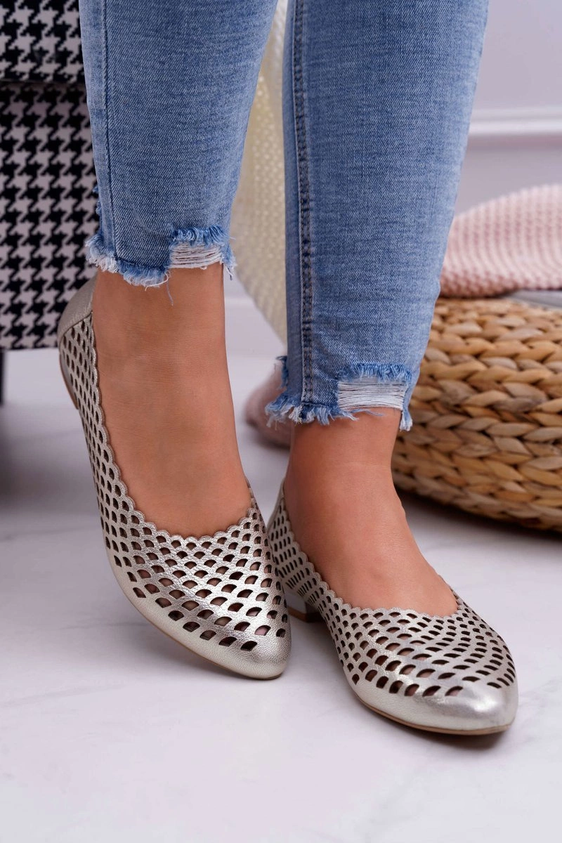 Baleriny Damskie Złote Skórzane Exquisite 1107/1
