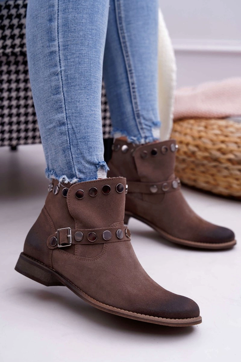Botki Damskie Beżowe Welurowe Exquisite 1172
