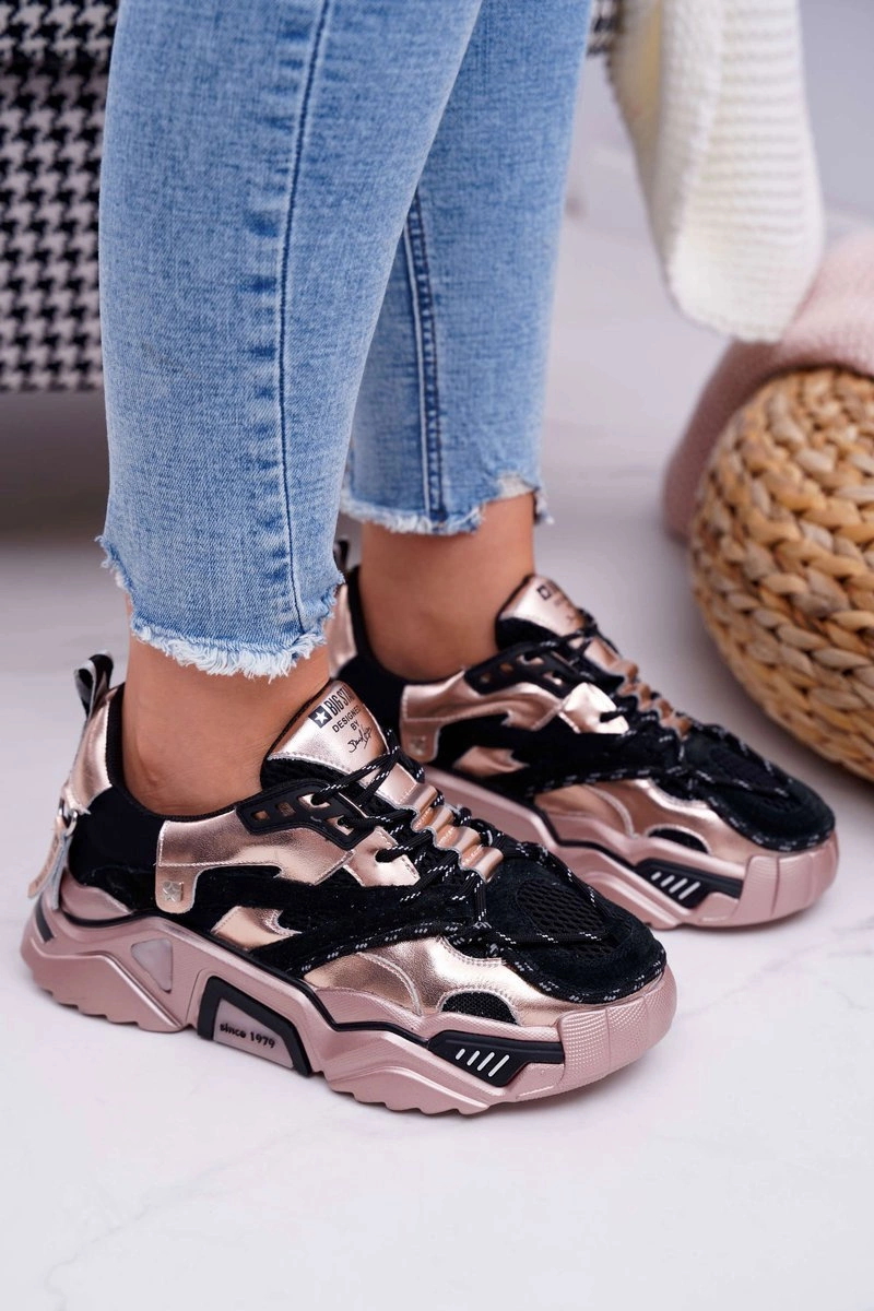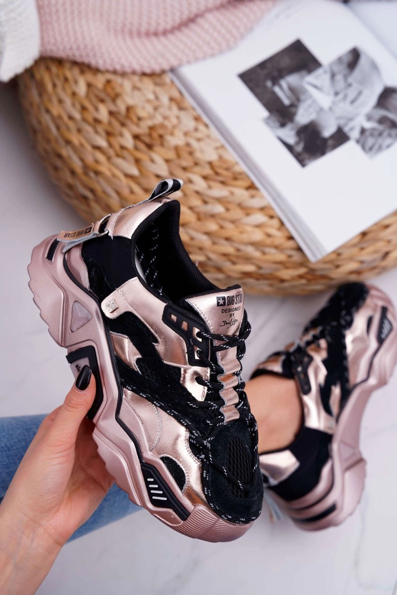 Damskie Sportowe Obuwie Big Star by Daniel Lopez Czarno Złote FF274A528