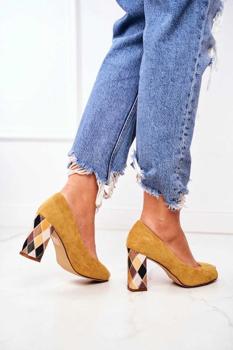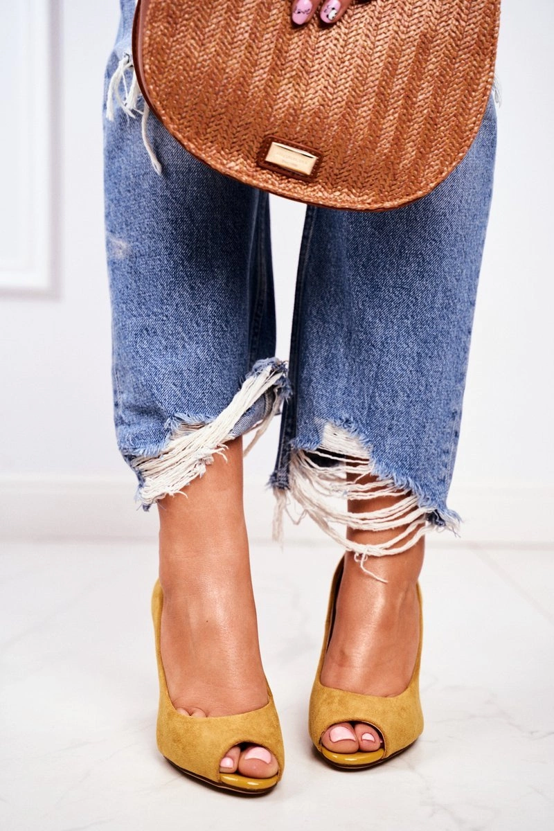 Zamszowe Czółenka Sergio Leone PB135 Żółte