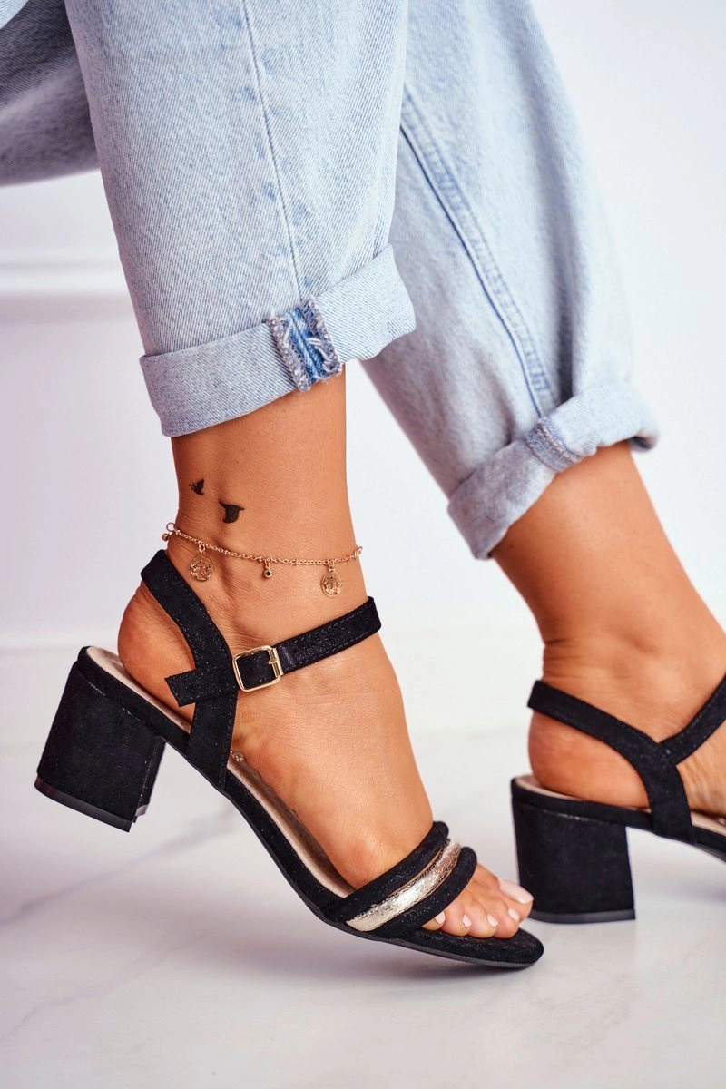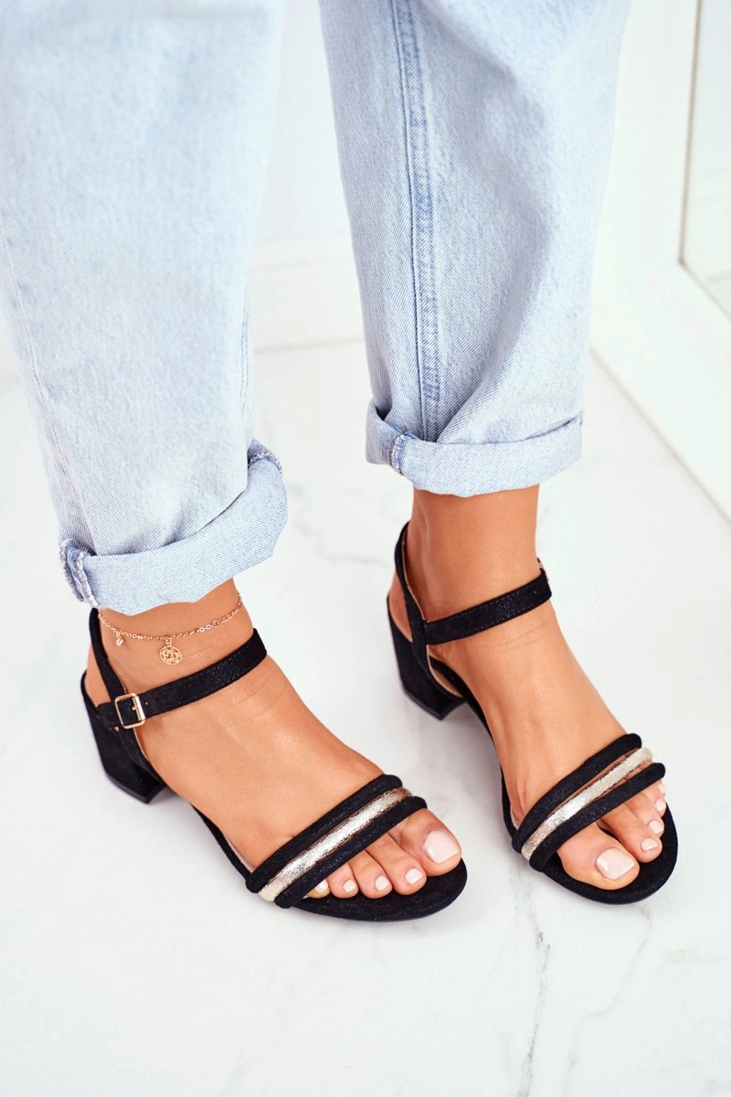 Sandały Damskie Na Słupku Z Brokatem Czarne Wixi