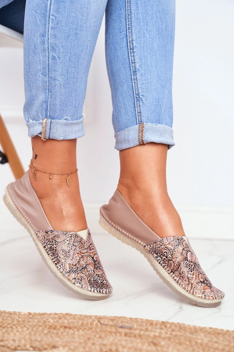 Baleriny Damskie Maciejka Skórzane Beżowe 01930-59/00-0