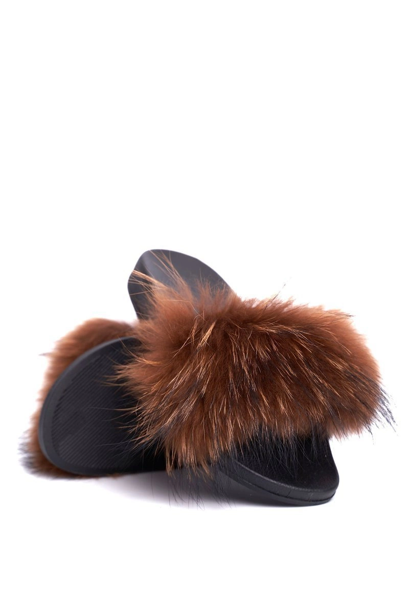 Klapki Z Naturalnym Futerkiem Brązowe Elsa
