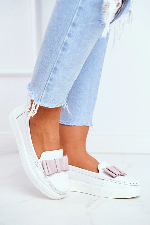 Mokasyny Damskie Skórzane Biało Różowe Lovren