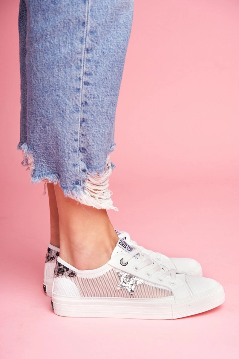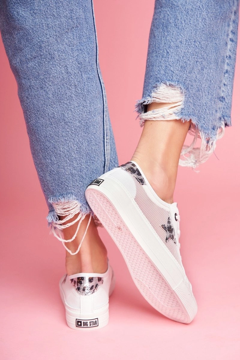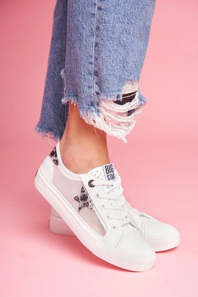 Niskie, klasyczne, ponadczasowe sznurowane trampki wykonane z siateczkowego materiału. Podeszwa antypoślizgowa, zdobiona logiem BIG STAR. Komfortowe trampki doskonale sprawdzą się zarówno podczas wyjścia do pracy, jak i w trakcie wycieczki za miasto. Klasyczny wzór połączony z niespotykaną dotąd wygodą to doskonały przepis na praktyczne i oryginalne buty. Przy wyborze rozmiaru prosimy kierować się tabelą rozmiarów.