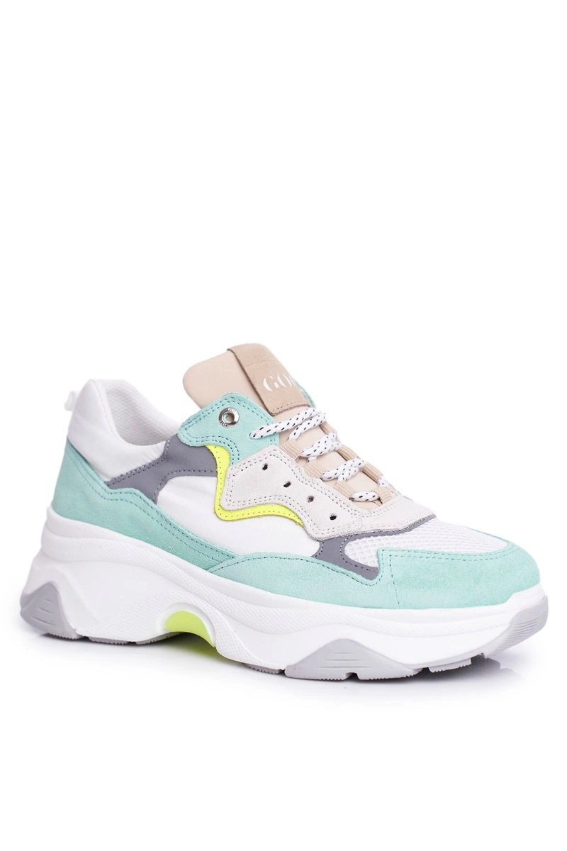 Damskie Sportowe Skórzane Obuwie GOE Biało Miętowe FF2N3011