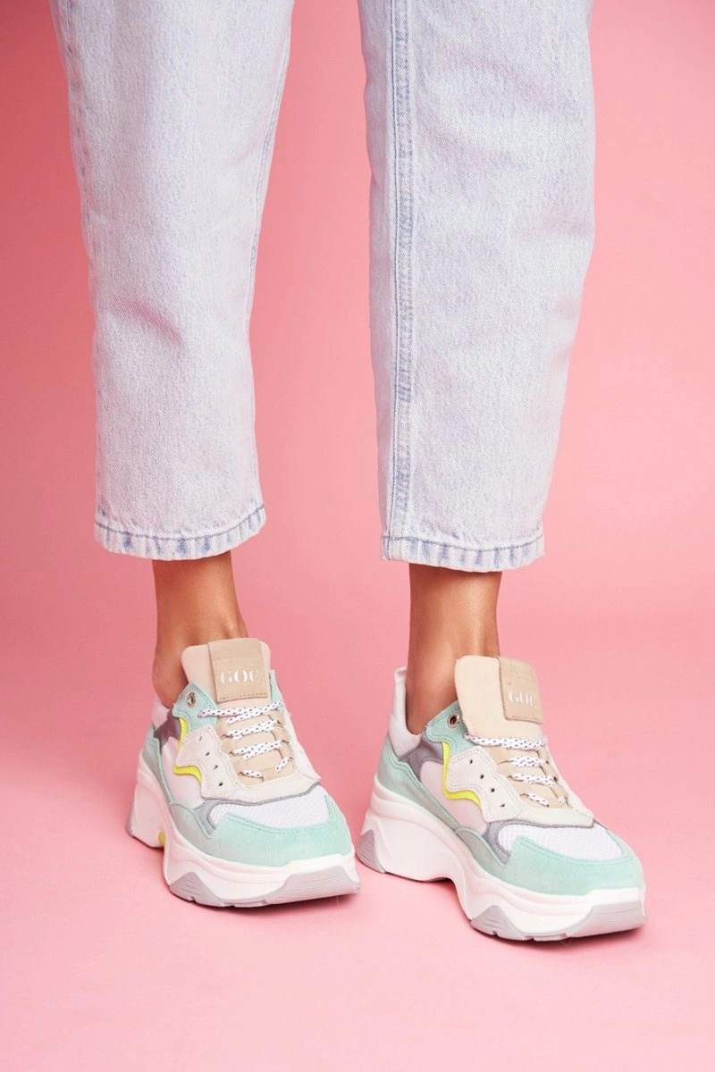 Cenisz sobie jakość oraz niepowtarzalny, zapierający dech w piersi styl? My Też! Dlatego mamy dla Was tą wspaniałą propozycję obuwia marki GOE. Sneakersy w całości wykonane z połączenia skóry naturalnej oraz materiału tekstylnego, tworząc przy tym wspaniałe kompozycje kolorystyczne. Obok takich butów nie można przejść obojętnie, więc przekonaj się sama i sprawdź te zalotne spojrzenia osób przechodzących obok Ciebie! Przy wyborze rozmiaru prosimy sugerować się tabelą rozmiarów.