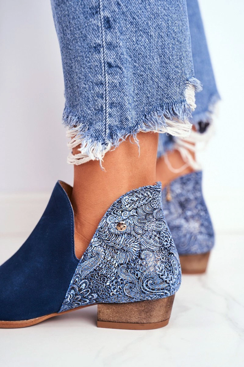 Damskie Skórzane Botki Maciejka Granatowe 04091-47