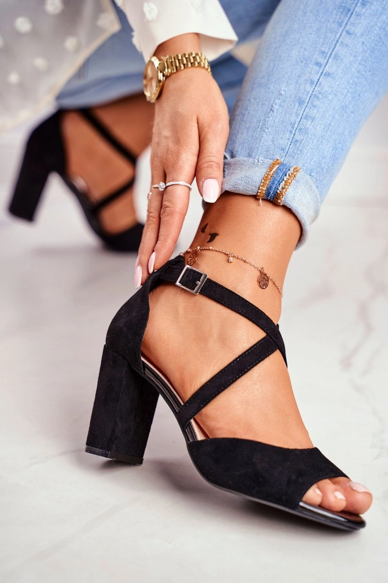Sandały Damskie Na Słupku Sergio Leone Czarne SK865
