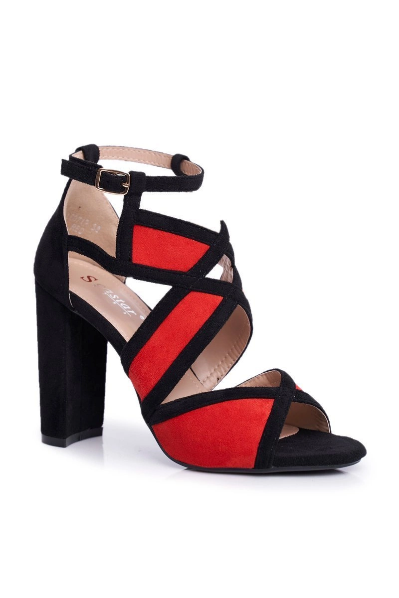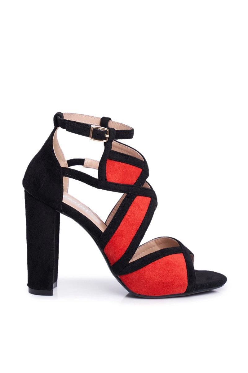 Zamszowe Sandały Na Słupku Czarno-Czerwone Emolly
