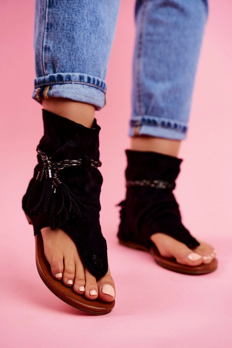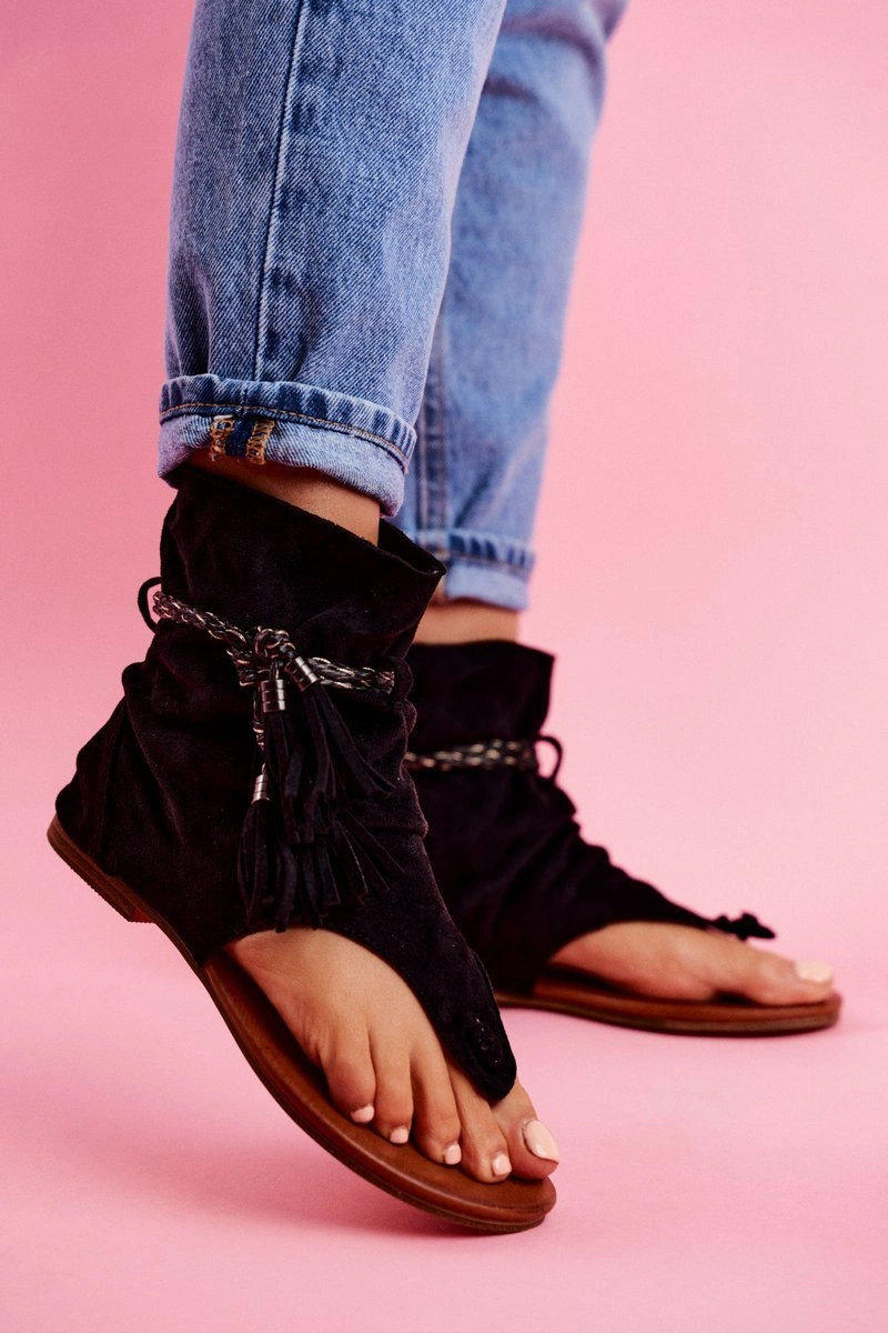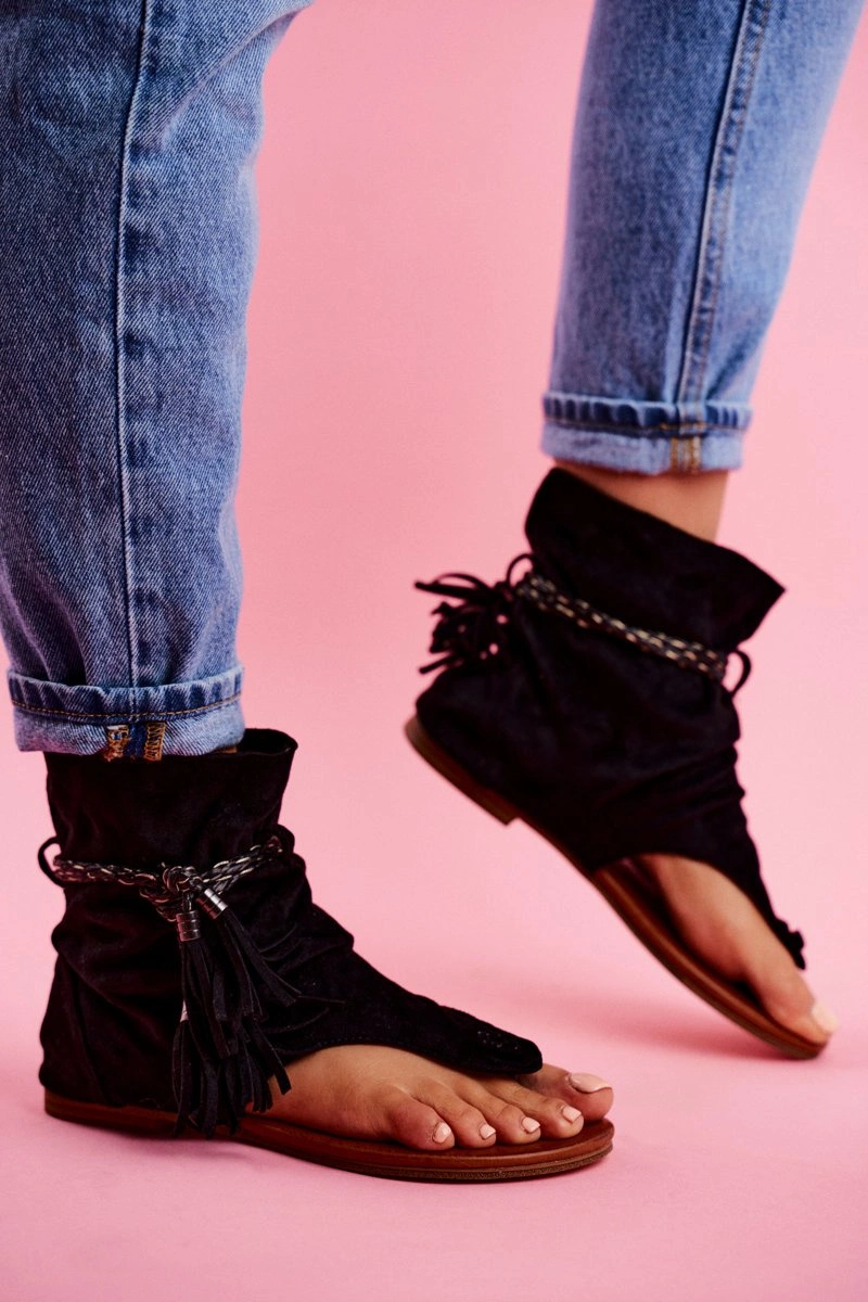 Damskie Sandałki Japonki Z Cholewką Czarne SL1011 Madrit