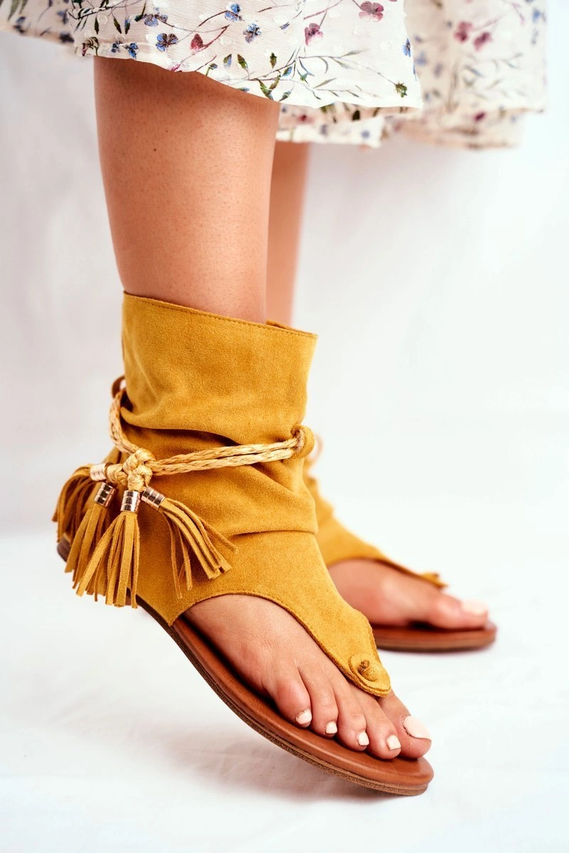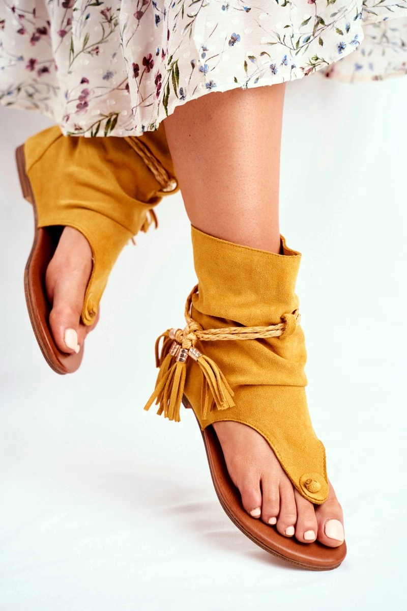 Damskie Sandałki Japonki Z Cholewką Żółte SL1011 Madrit