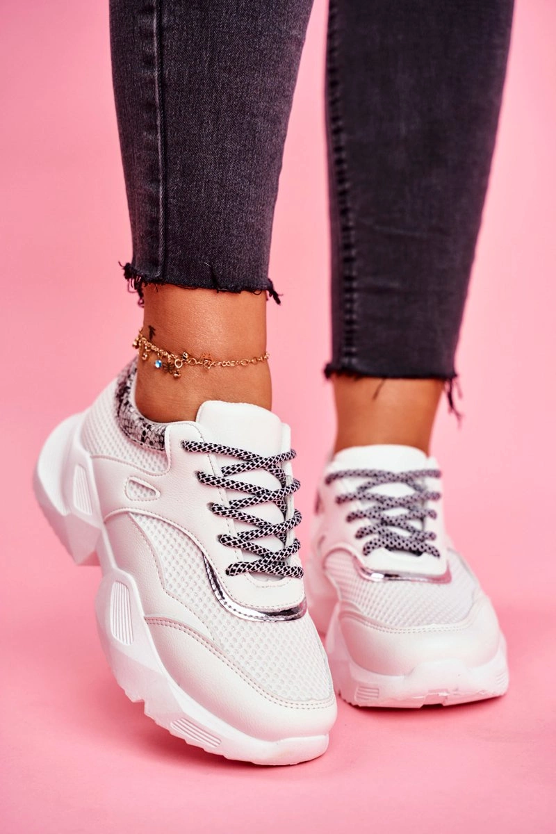 Sportowe Damskie Buty Wężowe Białe Giselle