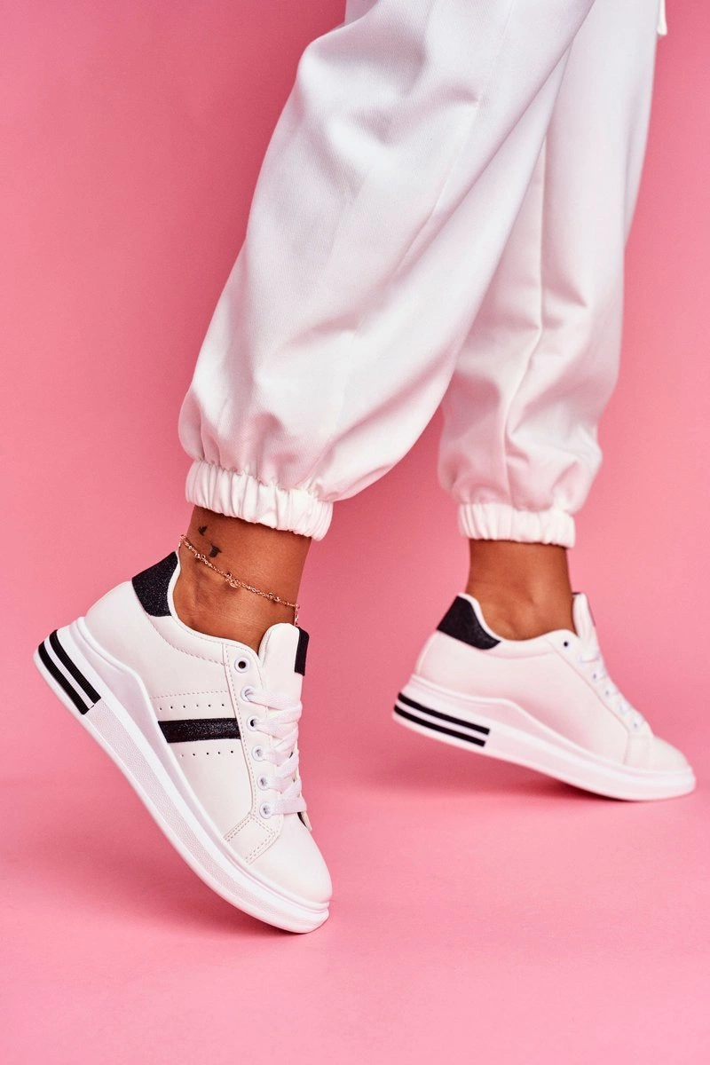 Sportowe Damskie Buty Czarny Brokat Białe Berge