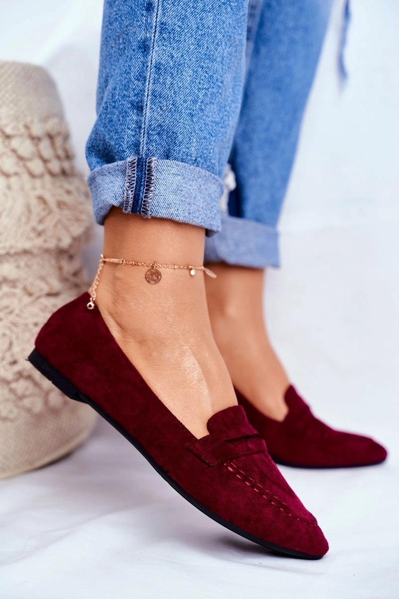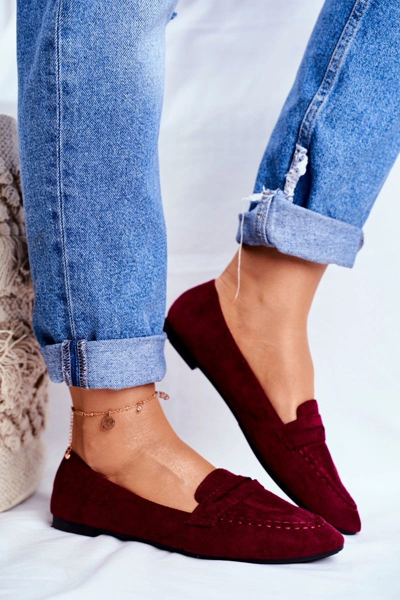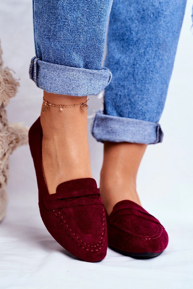 Mokasyny Damskie Zamszowe CH-1M6 Bordowe Laveria