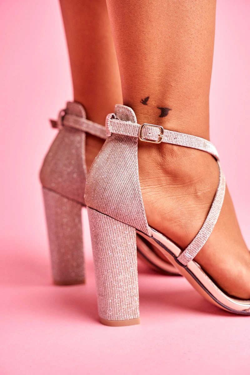 Wygodne sandały to marzenie każdej kobiety! Wysoki słupek i dobrze wyprofilowana podeszwa zapewni Ci gwarancje dobrego samopoczucia oraz gustownego wyglądu. Piękne brokatowe kolory z pewnością sprawią, że zostaniesz zauważona! Sandałki zapinane na pasek wokół kostki. Przy wyborze rozmiaru prosimy sugerować się tabelą rozmiarów.