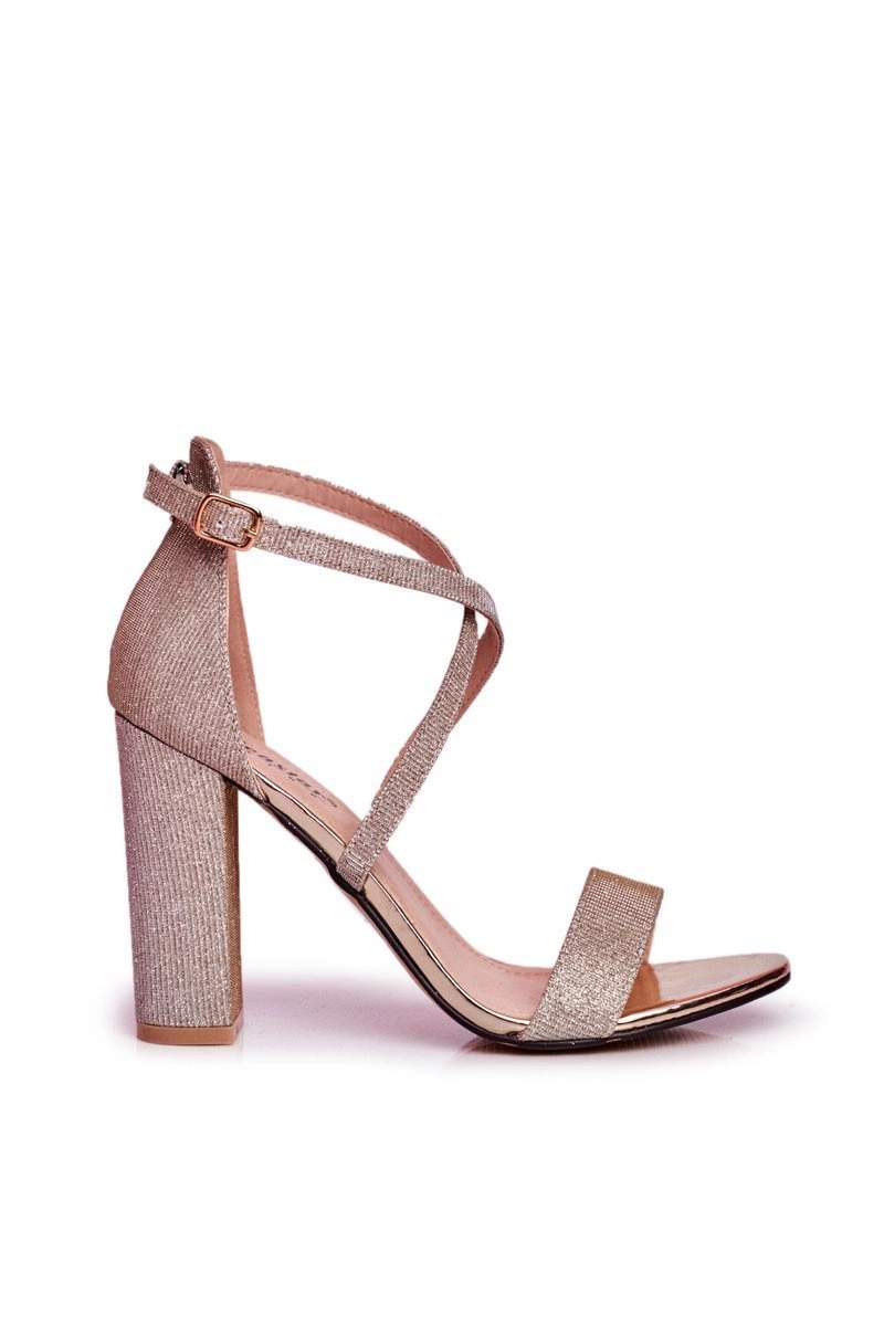 Sandały Damskie Na Słupku Brokatowe Złote Vivi