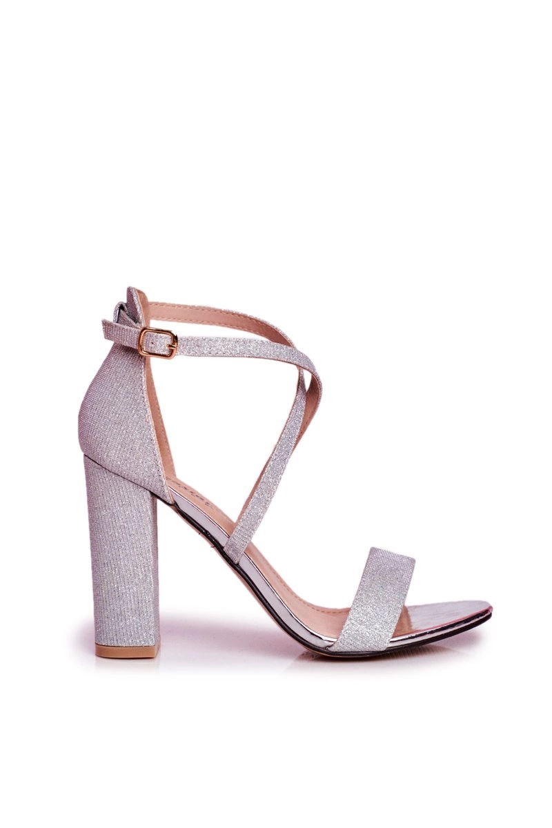 Sandały Damskie Na Słupku Brokatowe Srebrne Vivi