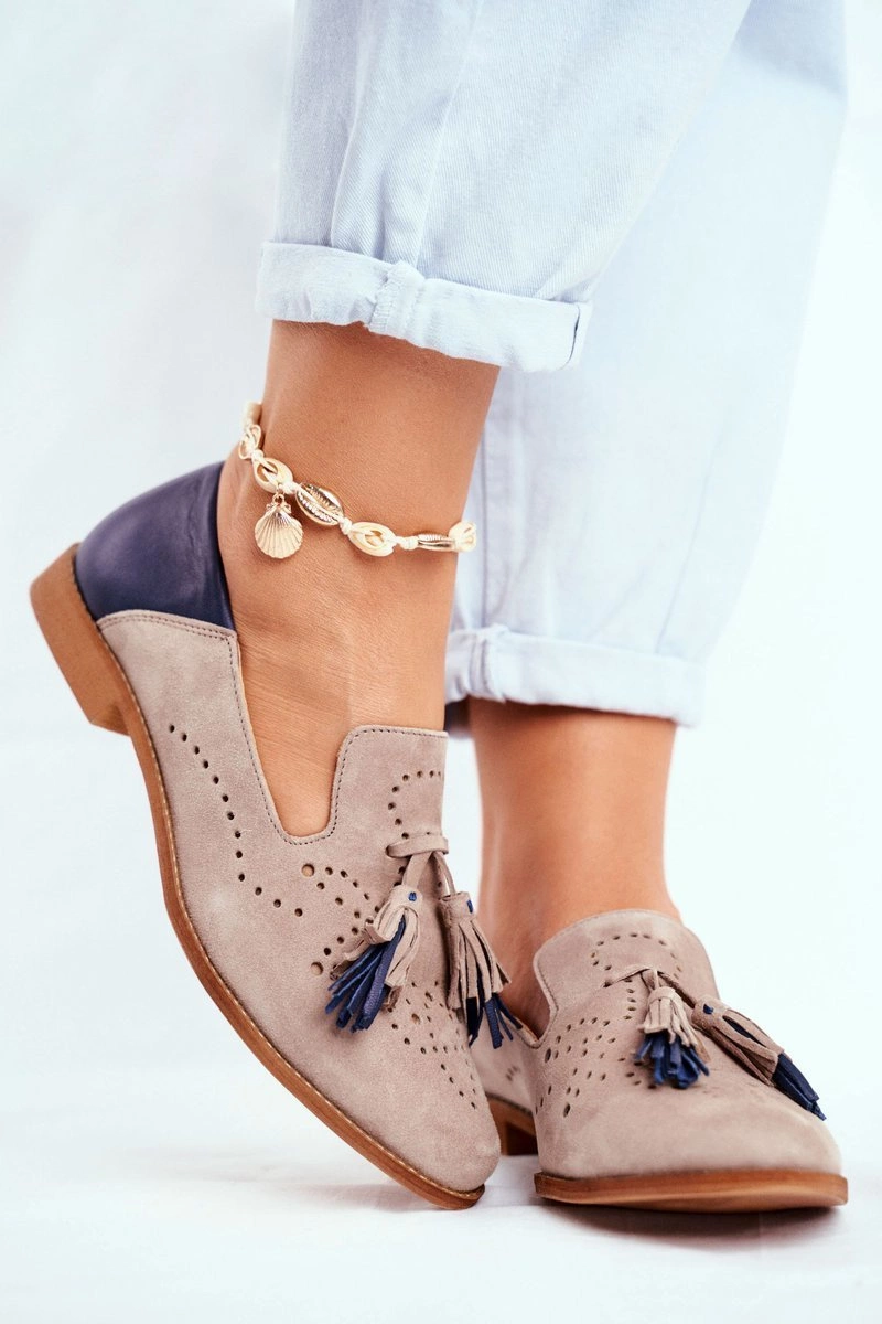 Damskie Półbuty Maciejka Skórzane Mokasyny Beżowe 04484-04/00-5