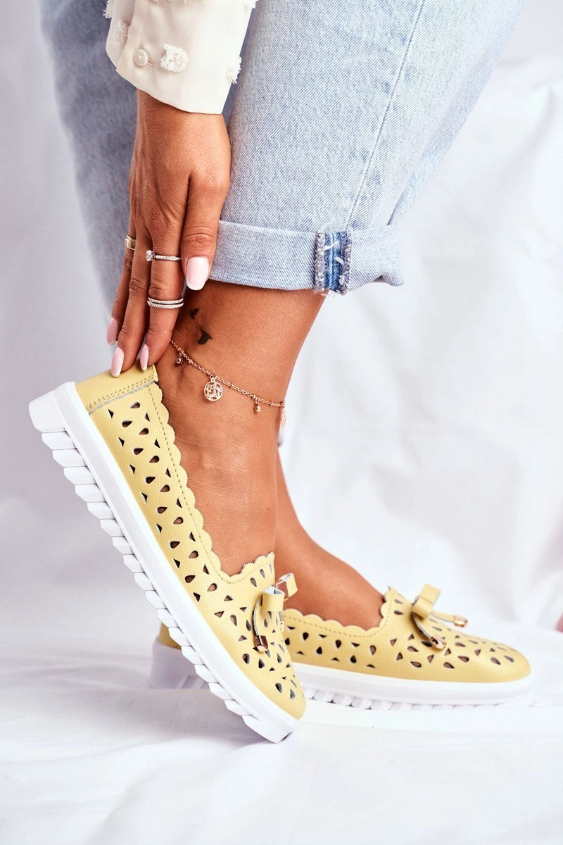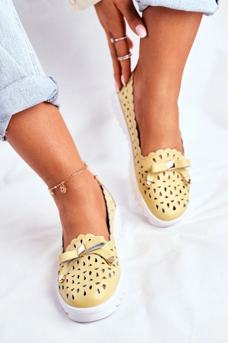 Mokasyny Damskie Skórzane Ażurowe LR71515 Żółte Murrieta