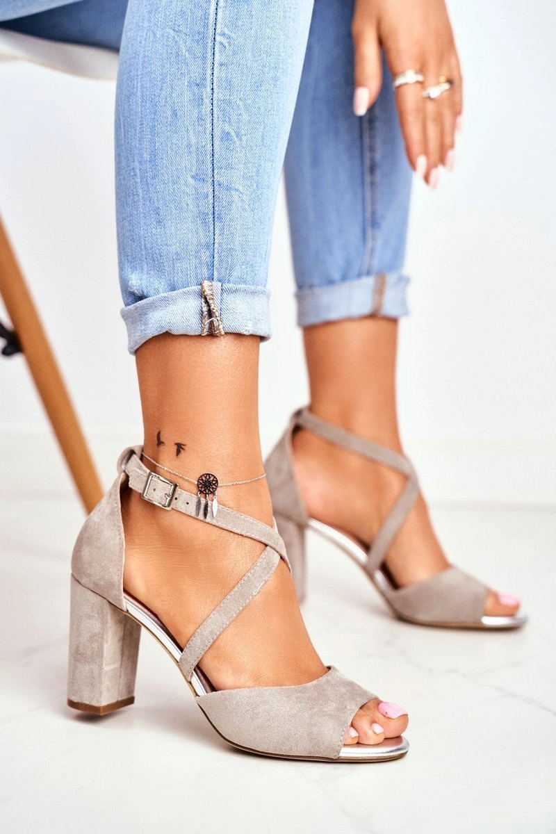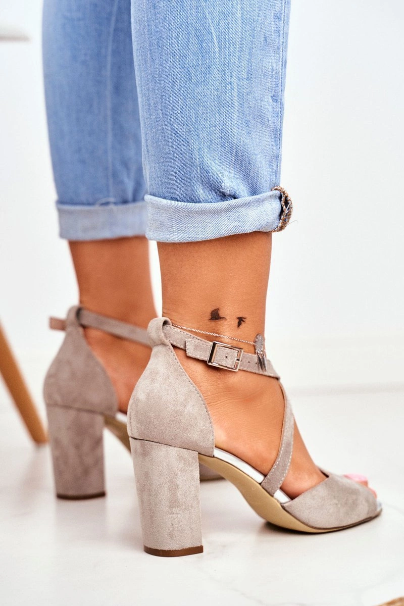 Zamszowe Sandały Na Słupku Sergio Leone SK865 Szare