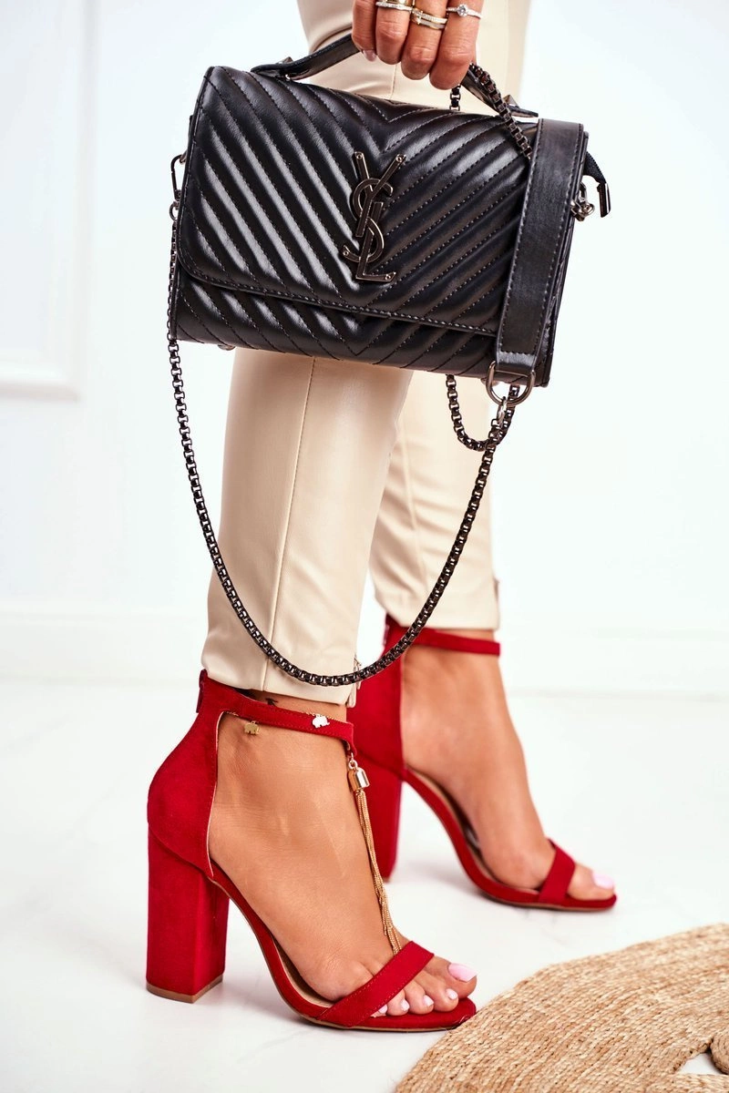 Czerwone Zamszowe Sandałki na Słupku z Frędzlem Annick