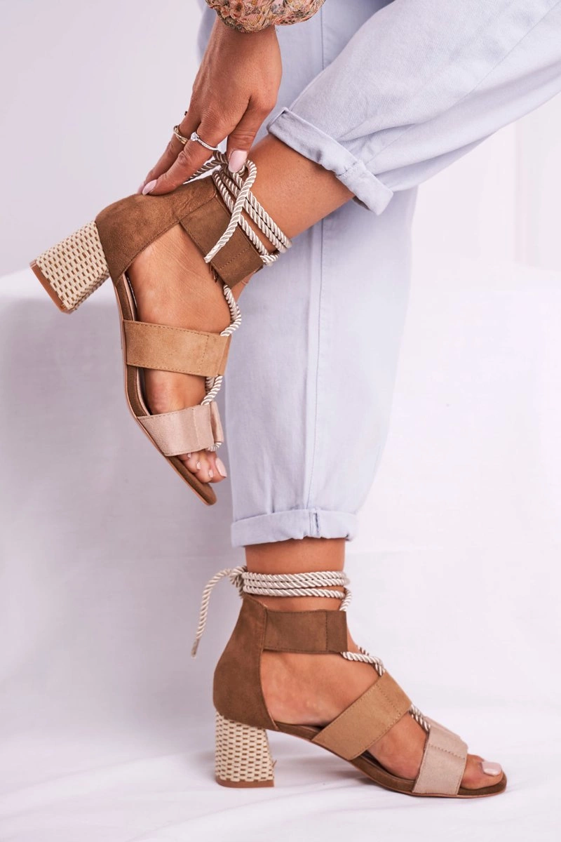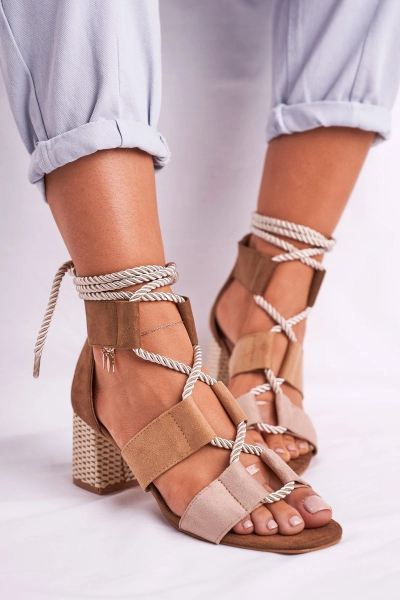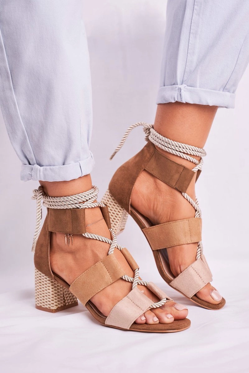 Sandałki Damskie Na Słupku Zamszowe Beżowe Beckie