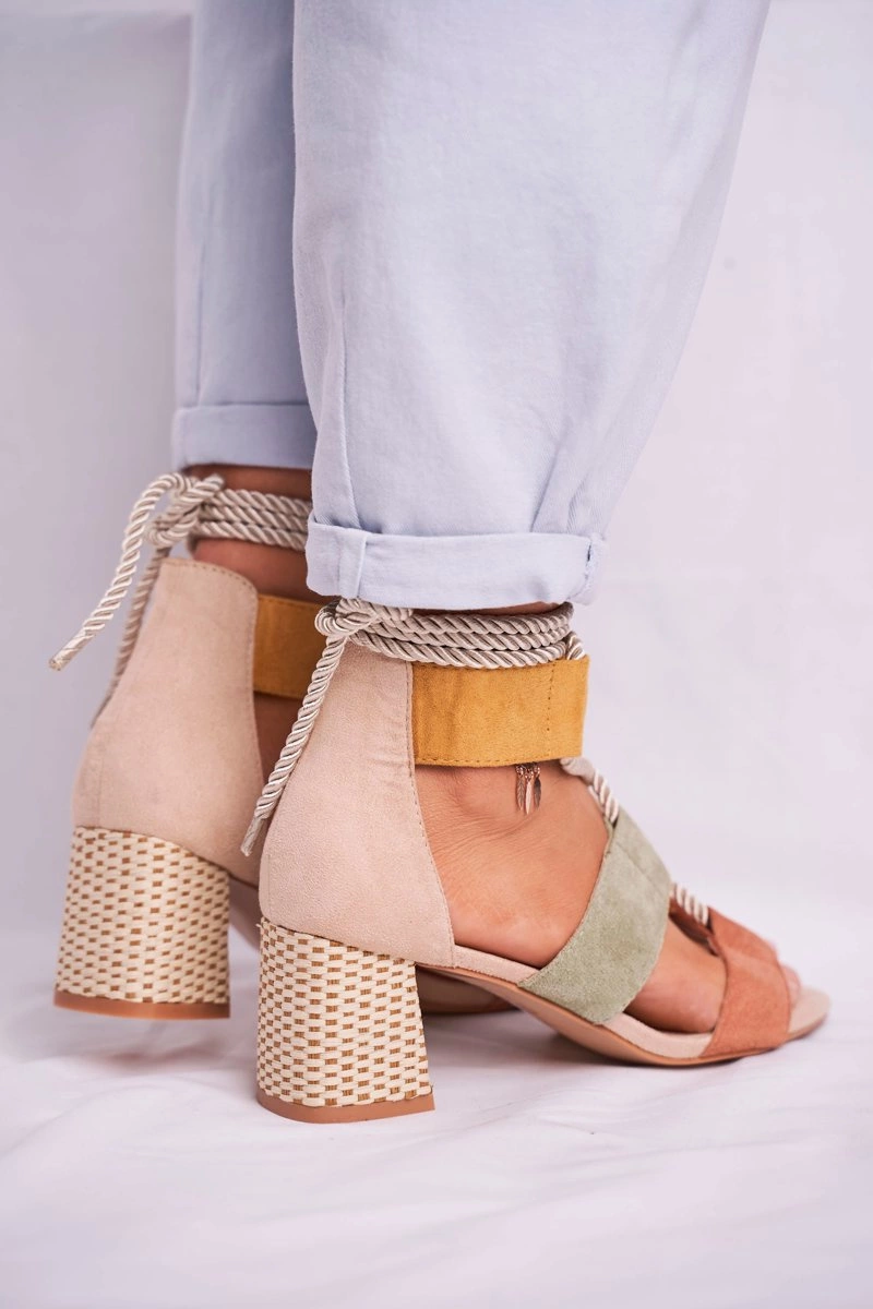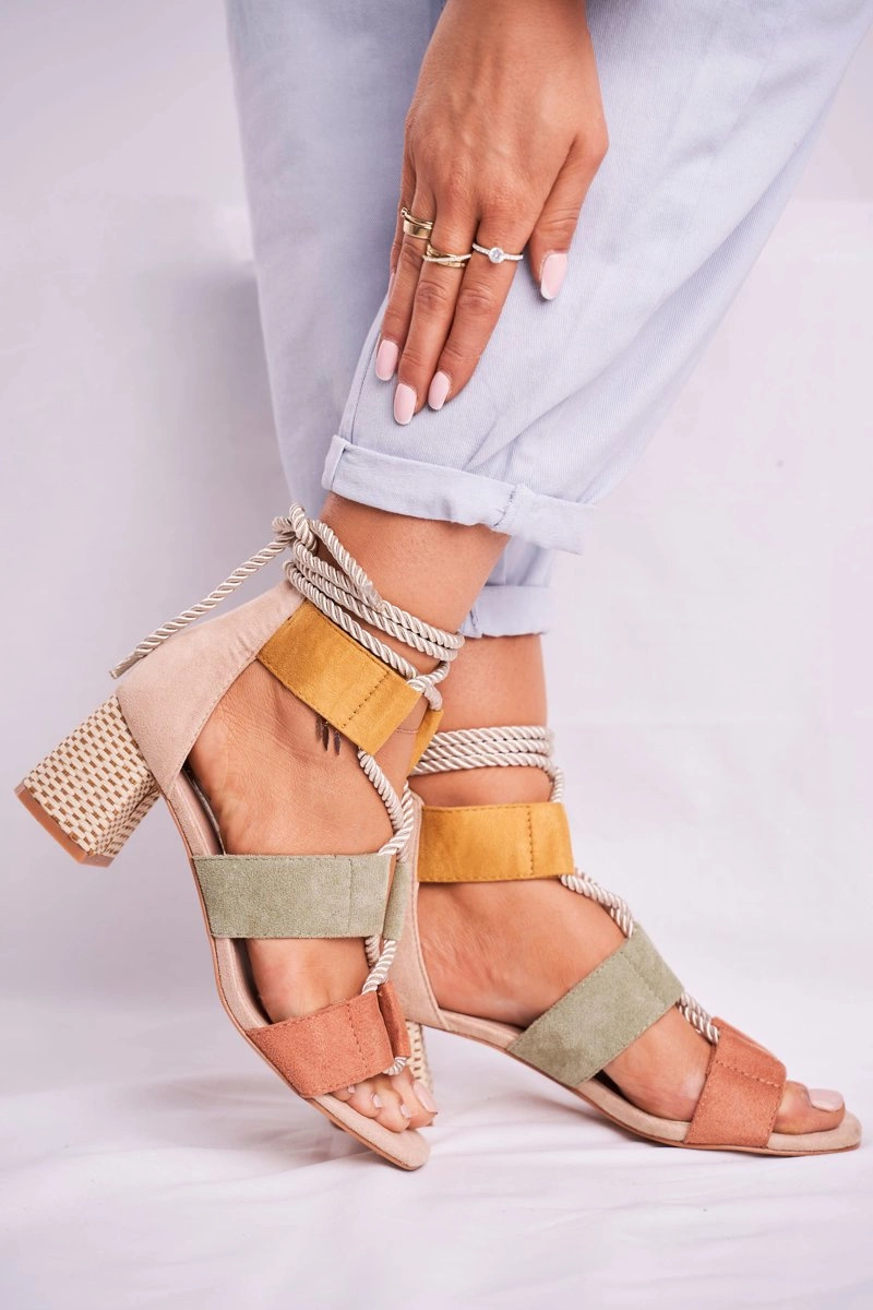 Sandałki Damskie Na Słupku Zamszowe Kolorowe Beckie
