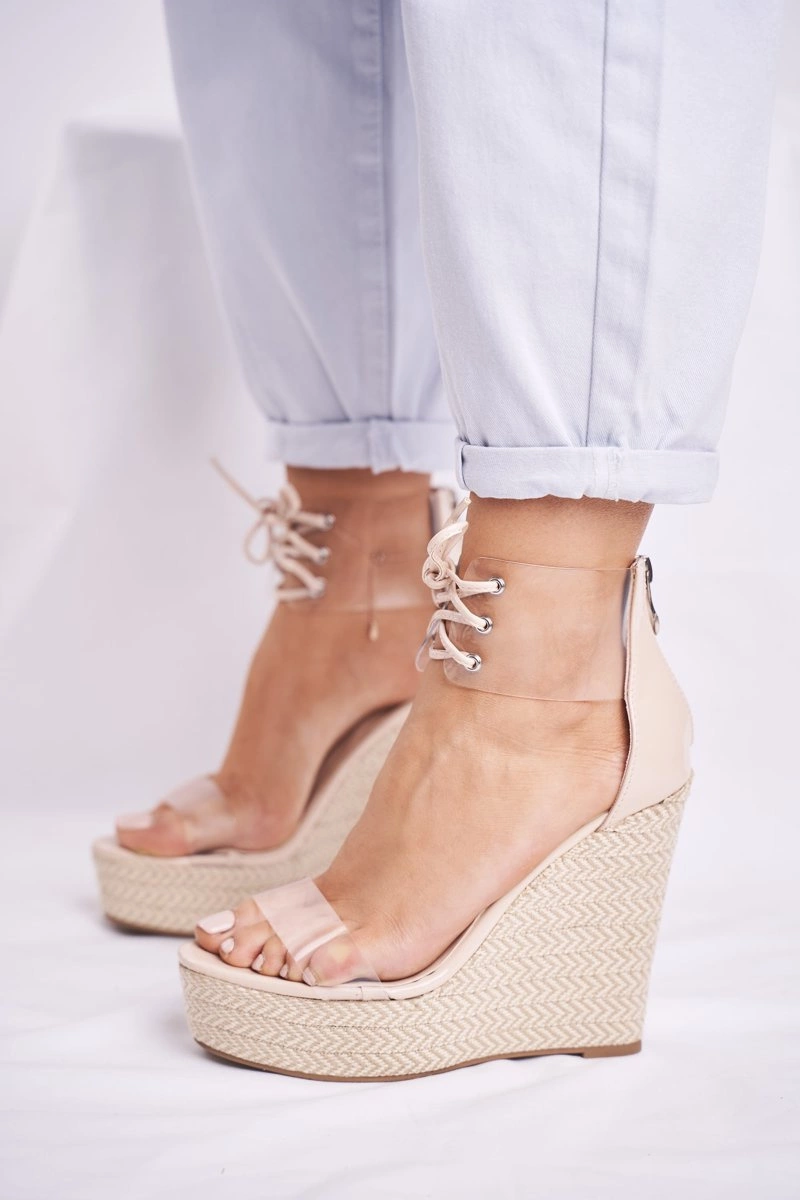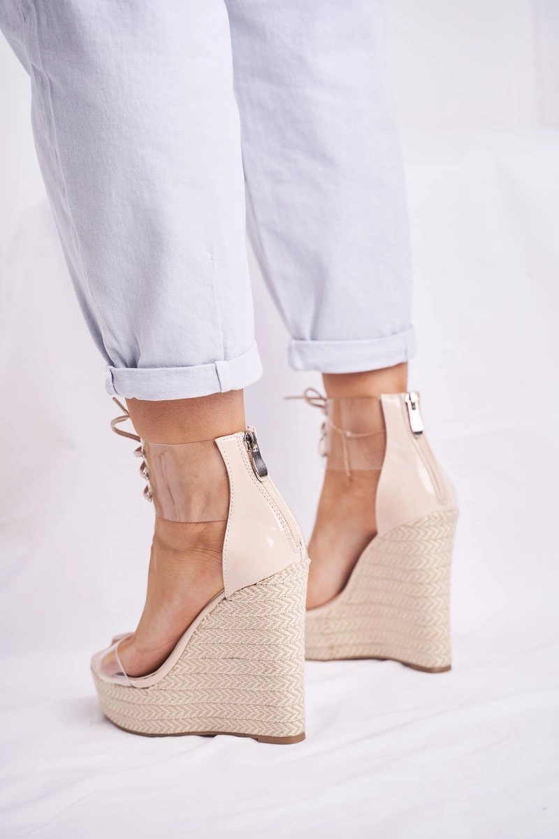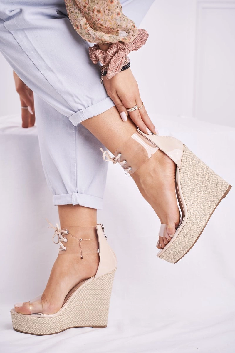 Sandałki Damskie Na Koturnie Beżowe Beautiful Way