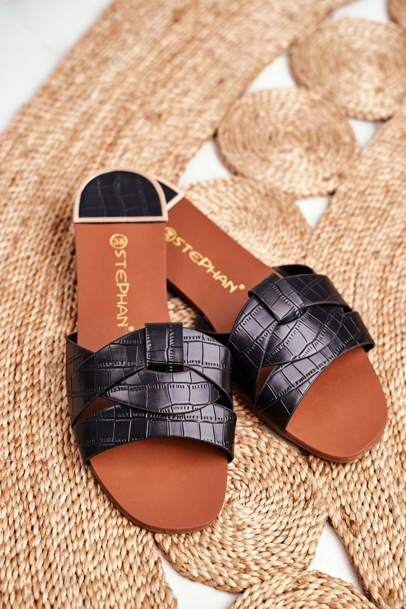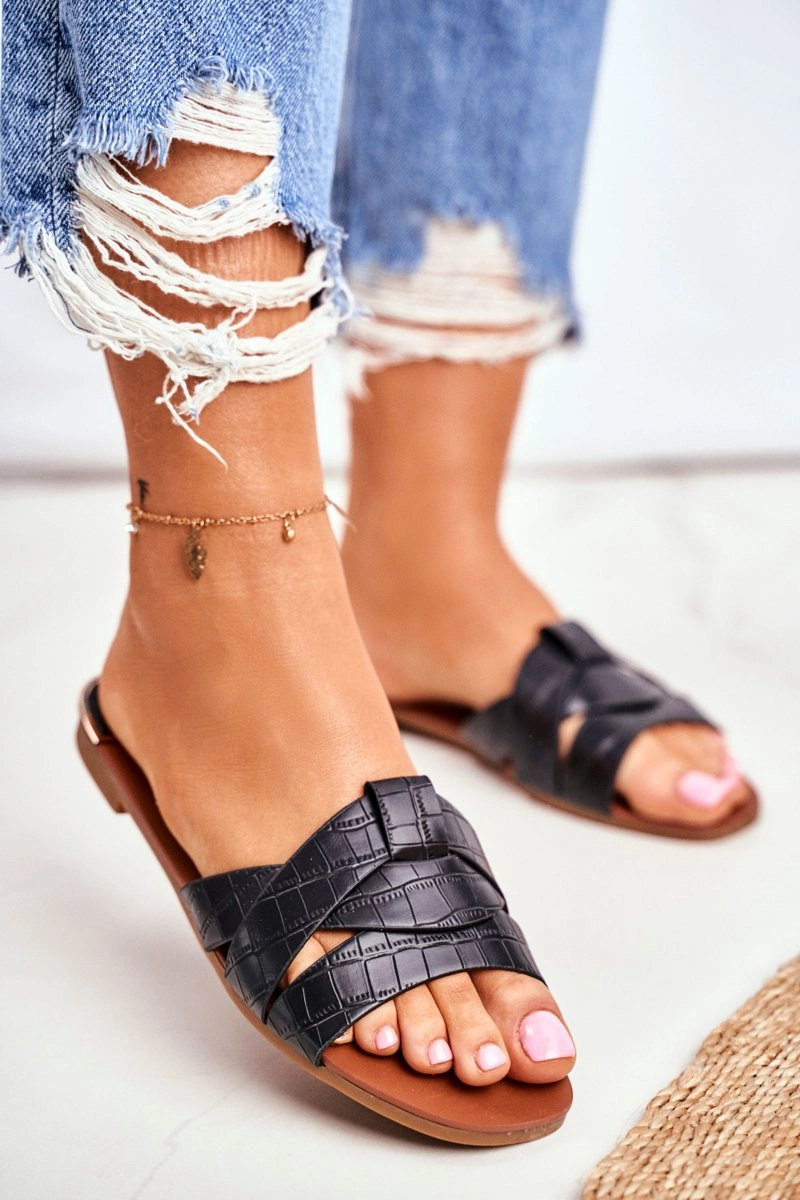 Damskie klapki na płaskim obcasie wykonane z ekoskóry, zarówno wkładka jak i cholewka. Piękny kolor połączony z motywem skóry węża. Prezentowany model zapewni nam wysoki komfort w ciepłe dni.