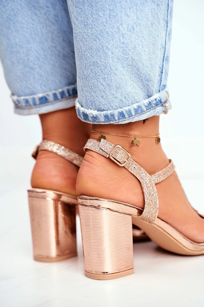 Sandały Damskie Na Słupku Brokatowe Champagne Perfecto