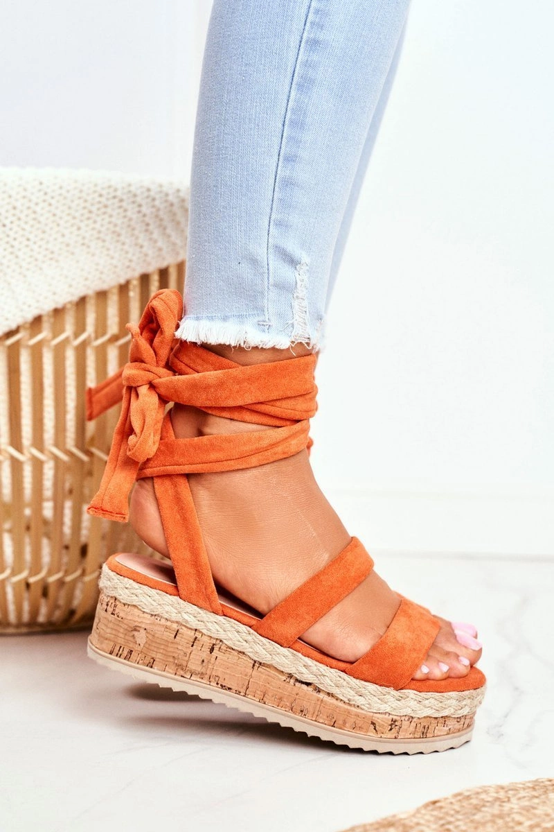 Sandały Damskie Na Platformie Wiązane Pomarańczowe La Favorite